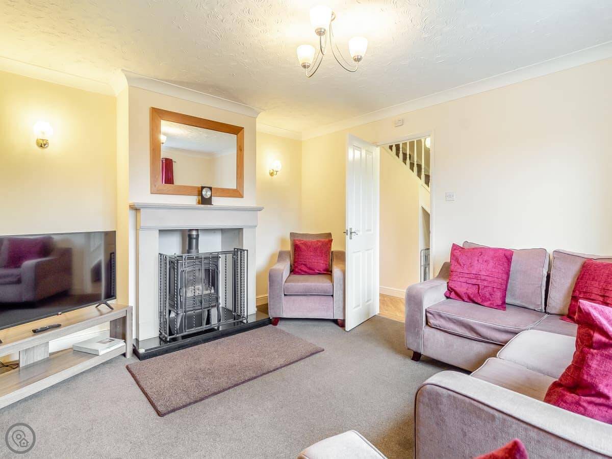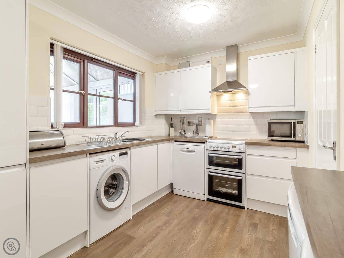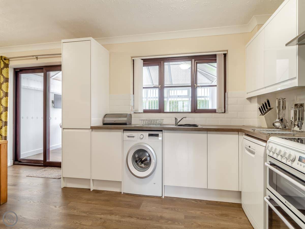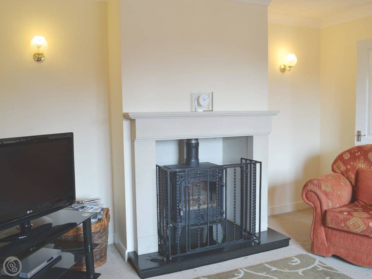 Inside, there's a woodburning stove for cooler evenings, a dishwasher, a washing machine, and WiFi. Parking is right there on the drive. Bedding and towels are included, and we have a cot and highchair if you need them.