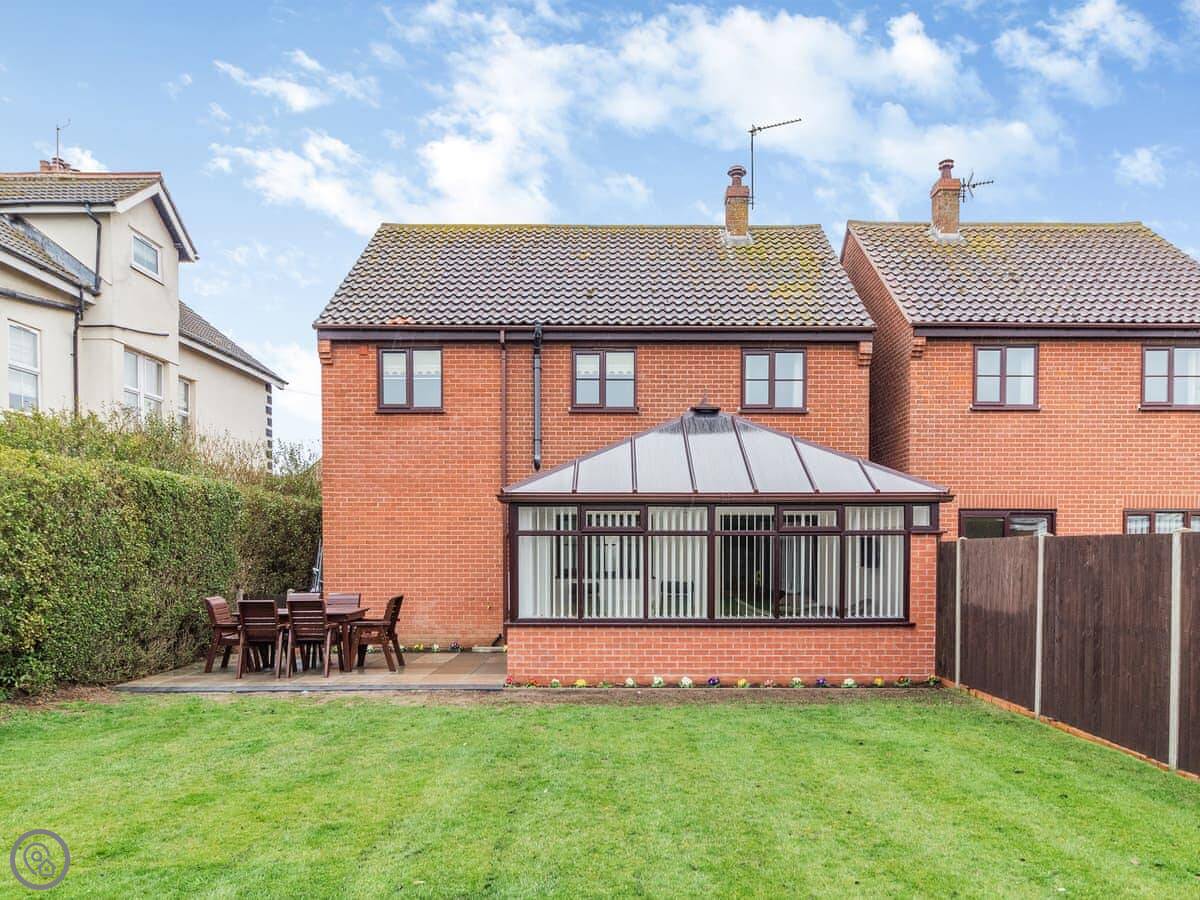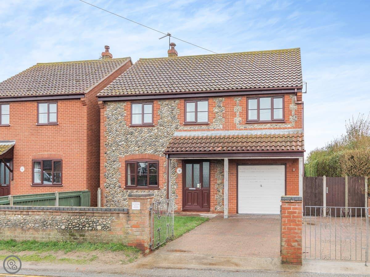 Cockleshell Cottage is in Sea Palling, Norfolk. It's a detached house painted white, about a three minute walk from the beach. The garden is enclosed, which is good if you've got dogs or kids.