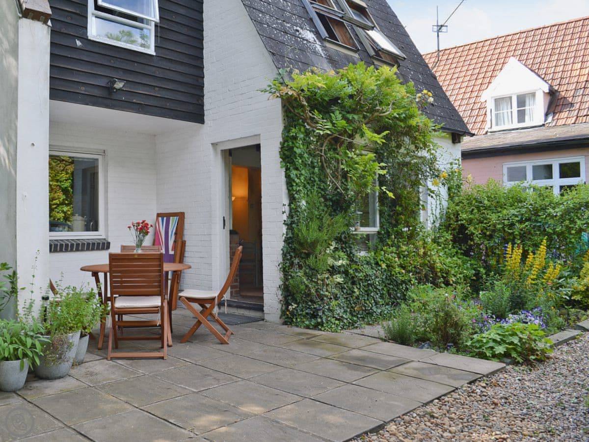 The cottage is detached and Scandinavian style, which means it's light and modern inside, not old beams and low ceilings. It's right on the village green. The garden is enclosed.