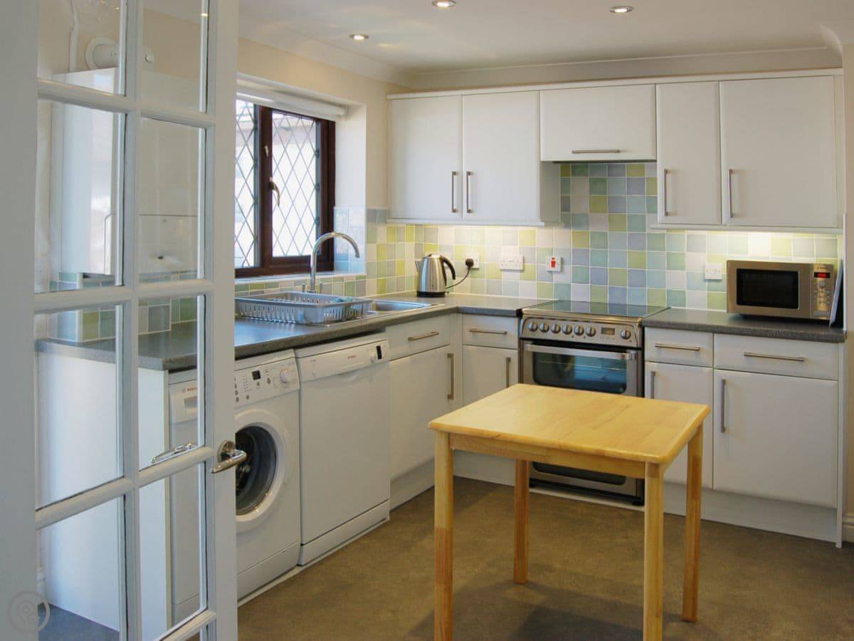In terms of what's here, it's got a dishwasher and a washing machine. There's parking for two cars on the drive. Bedding is included. WiFi works fine. The garden is fully enclosed. No pets, sorry.