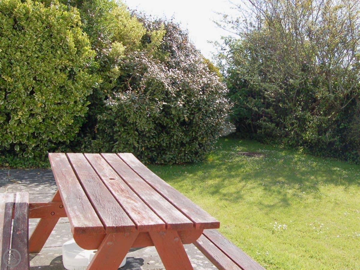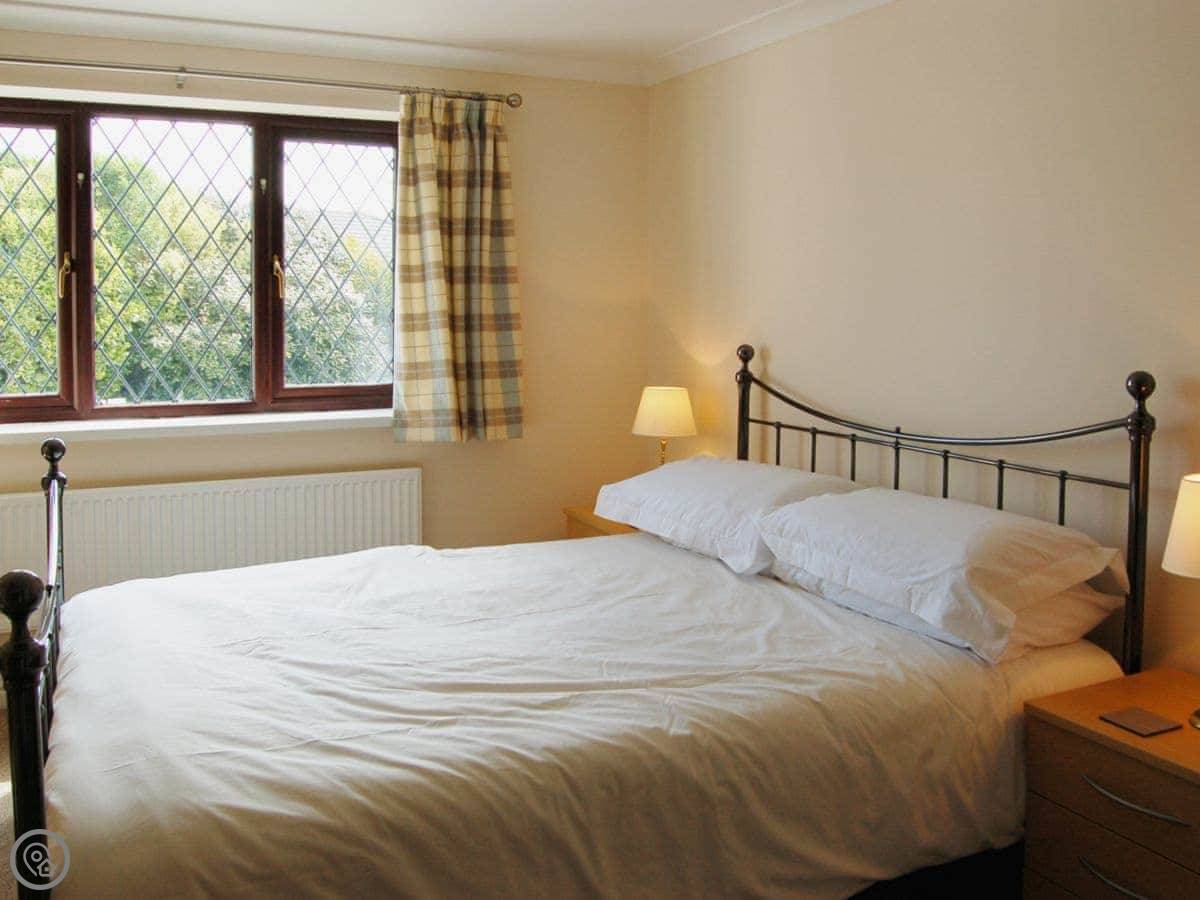 It sleeps six, with three bedrooms and two bathrooms. It's got a 4 Star rating, which means it's well equipped and comfy. The garden is enclosed and gets the sun. You can actually see a bit of the estuary from the front, which is nice.