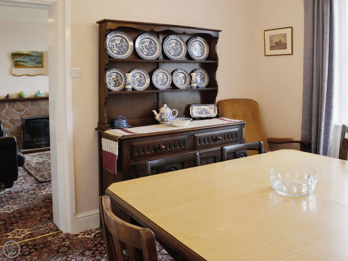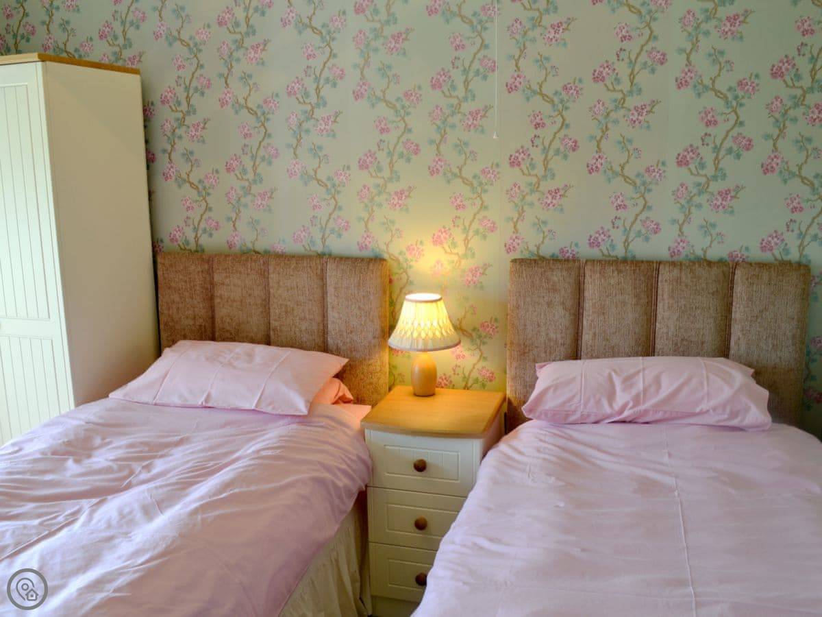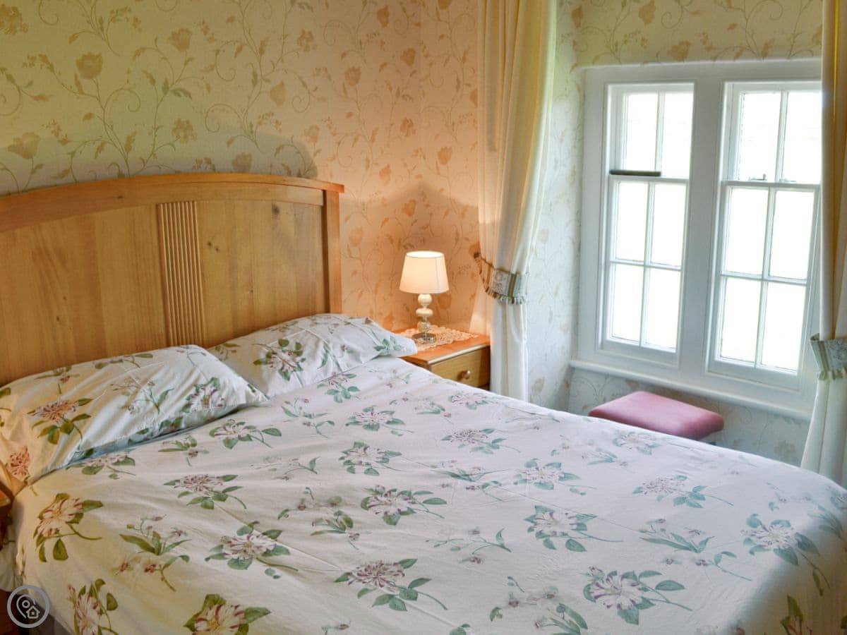 It's a detached house, a bit bigger than some. It used to be the gamekeeper's cottage for the old farm. Sleeps nine, in four bedrooms. There's one bathroom.
