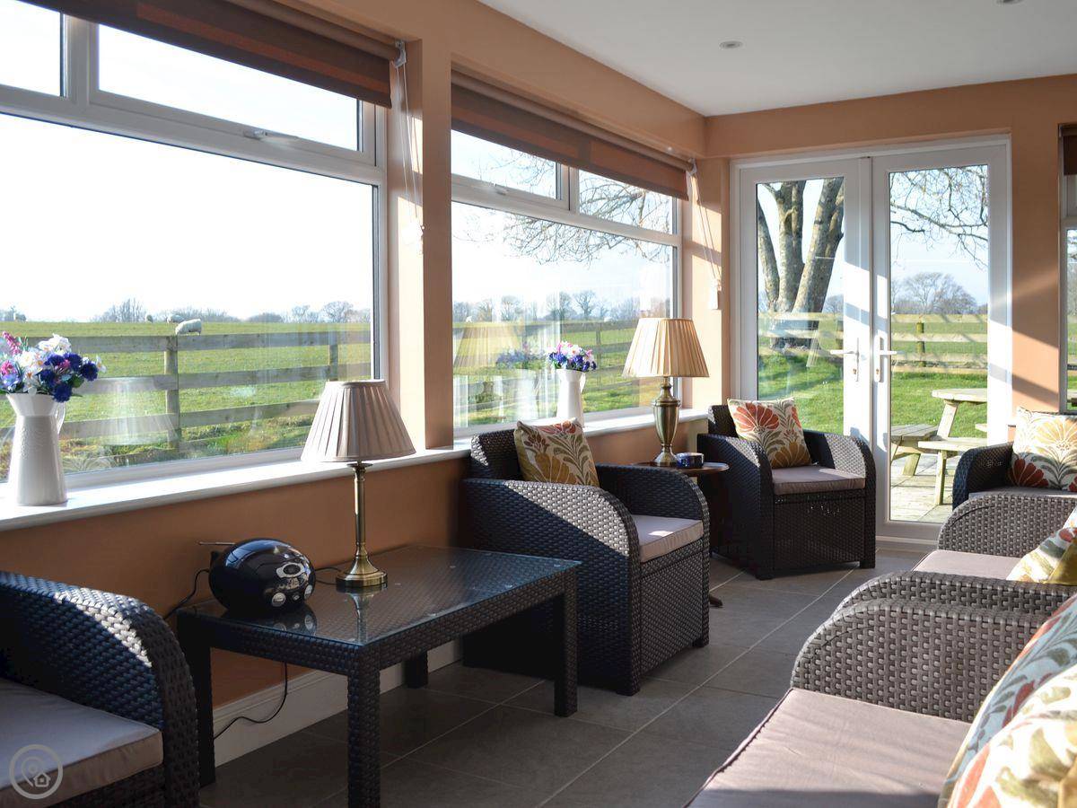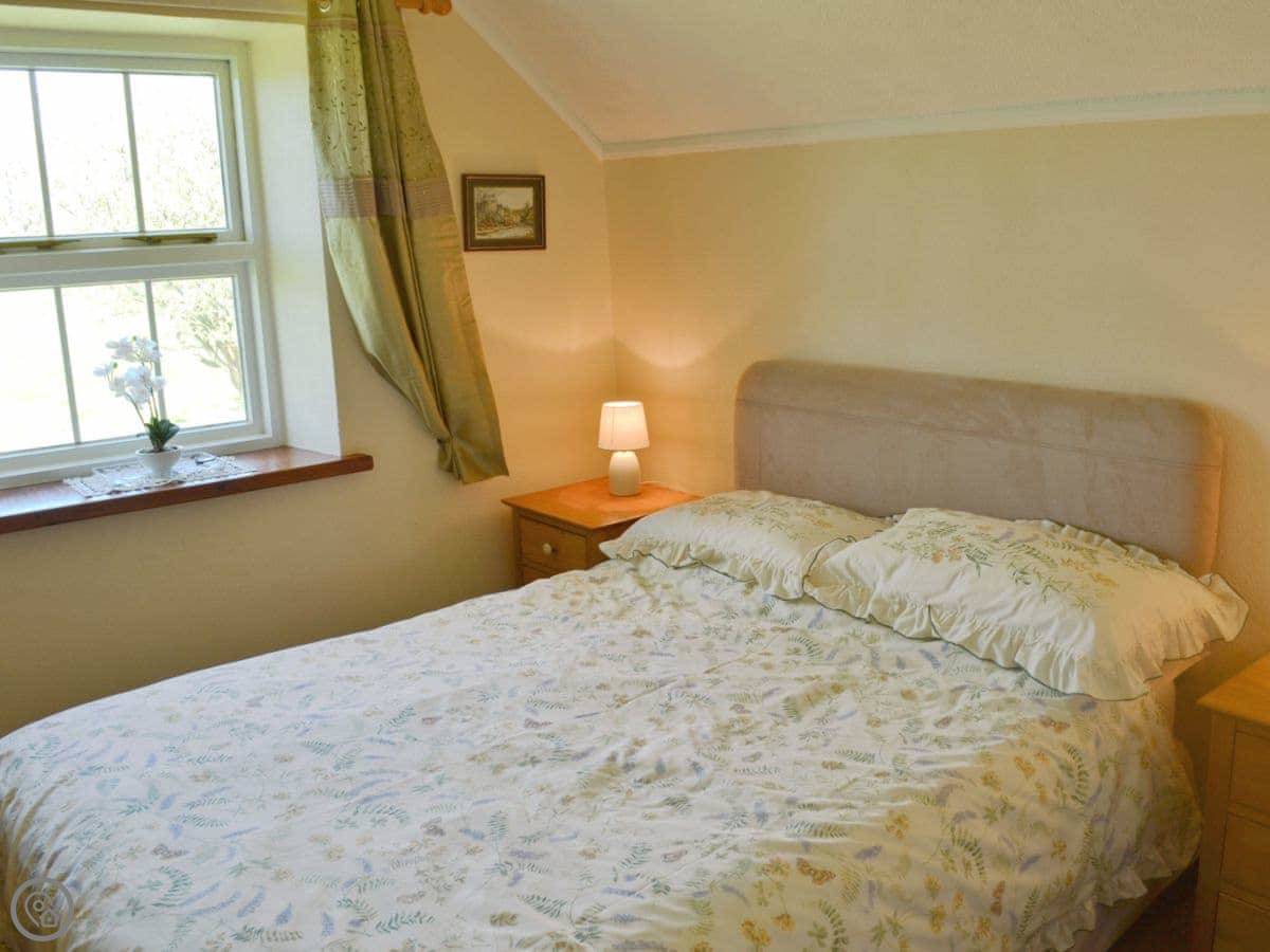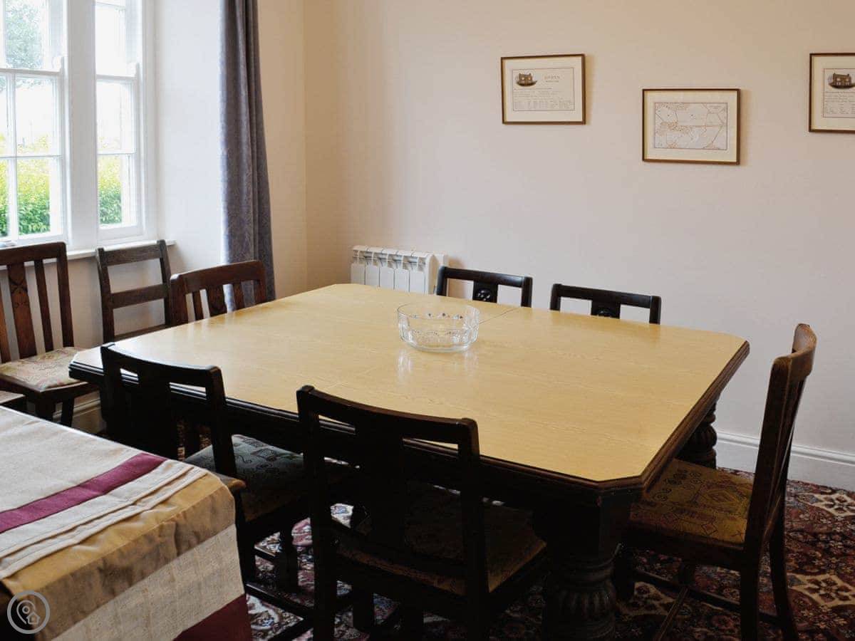 It's a detached house, a bit bigger than some. It used to be the gamekeeper's cottage for the old farm. Sleeps nine, in four bedrooms. There's one bathroom.