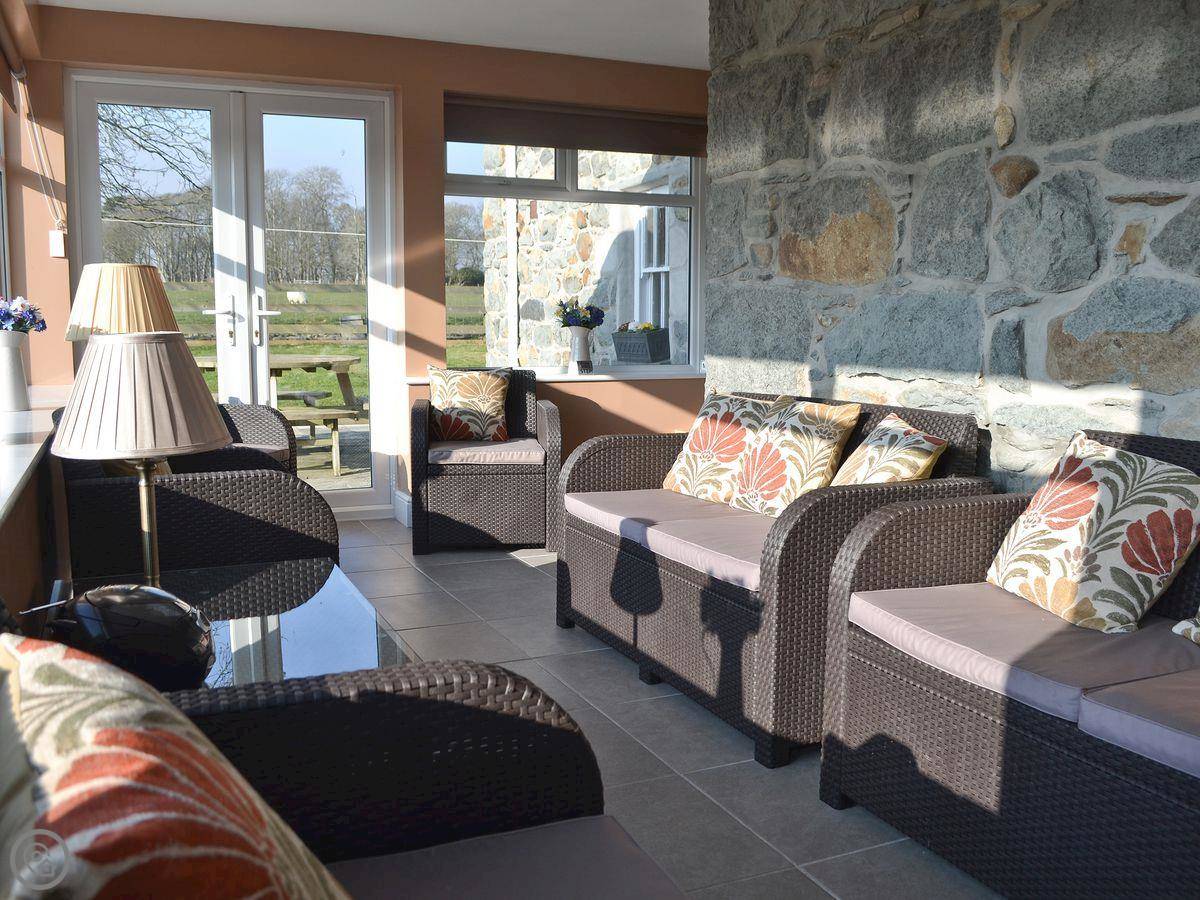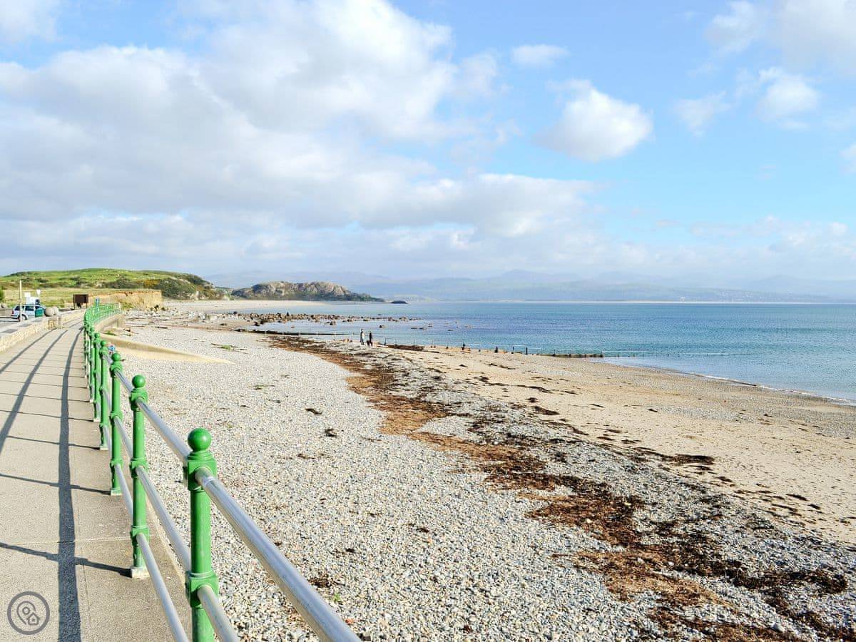 It's quiet here, quite rural. You can walk from the door. The local pub is about three quarters of a mile up the road. They do food. The nearest shop is in Criccieth, two miles away.