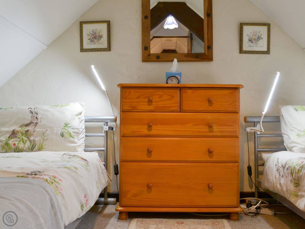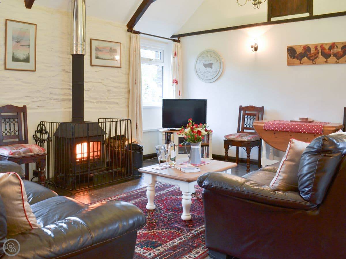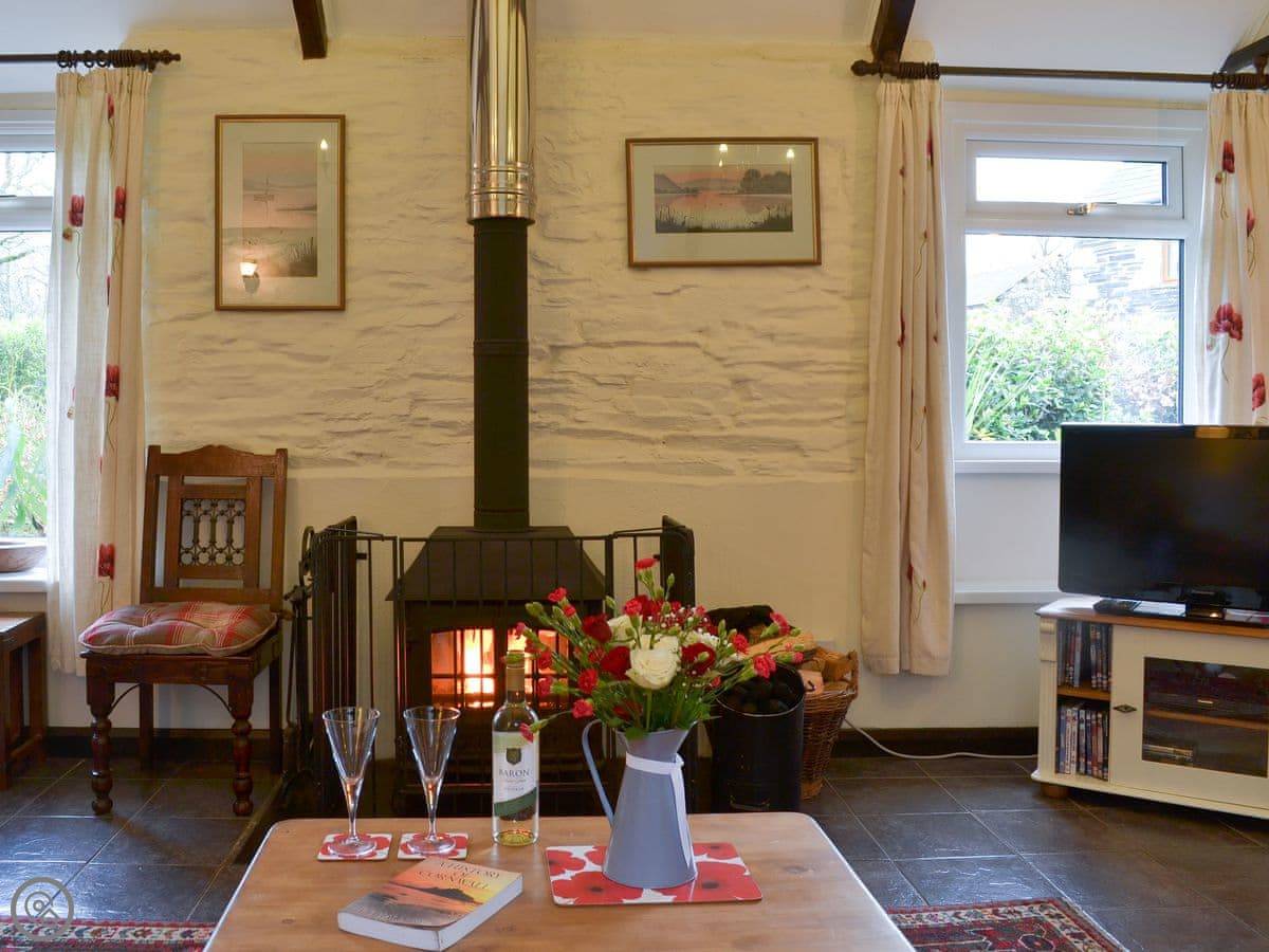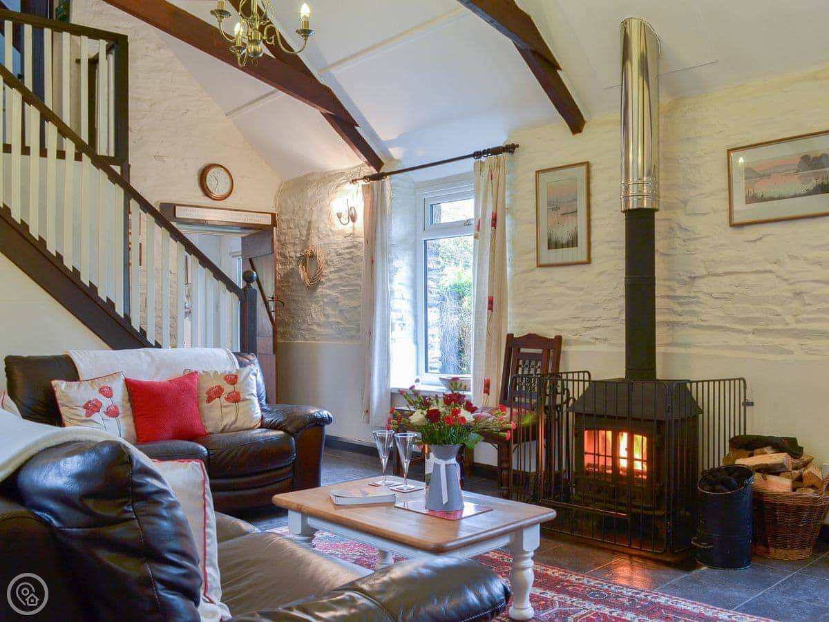 Set in the friendly owners’ garden with an array of wild bird life, and beside a babbling brook, this two bedroom cottage is converted from an 18th century barn, with high vaulted ceilings, original beams, slate flooring, oil fire central heating, and large solid fuel burner, making it perfect for a cosy winter break or relaxing summer holiday. The front garden is for the exclusive use of guests during their stay.