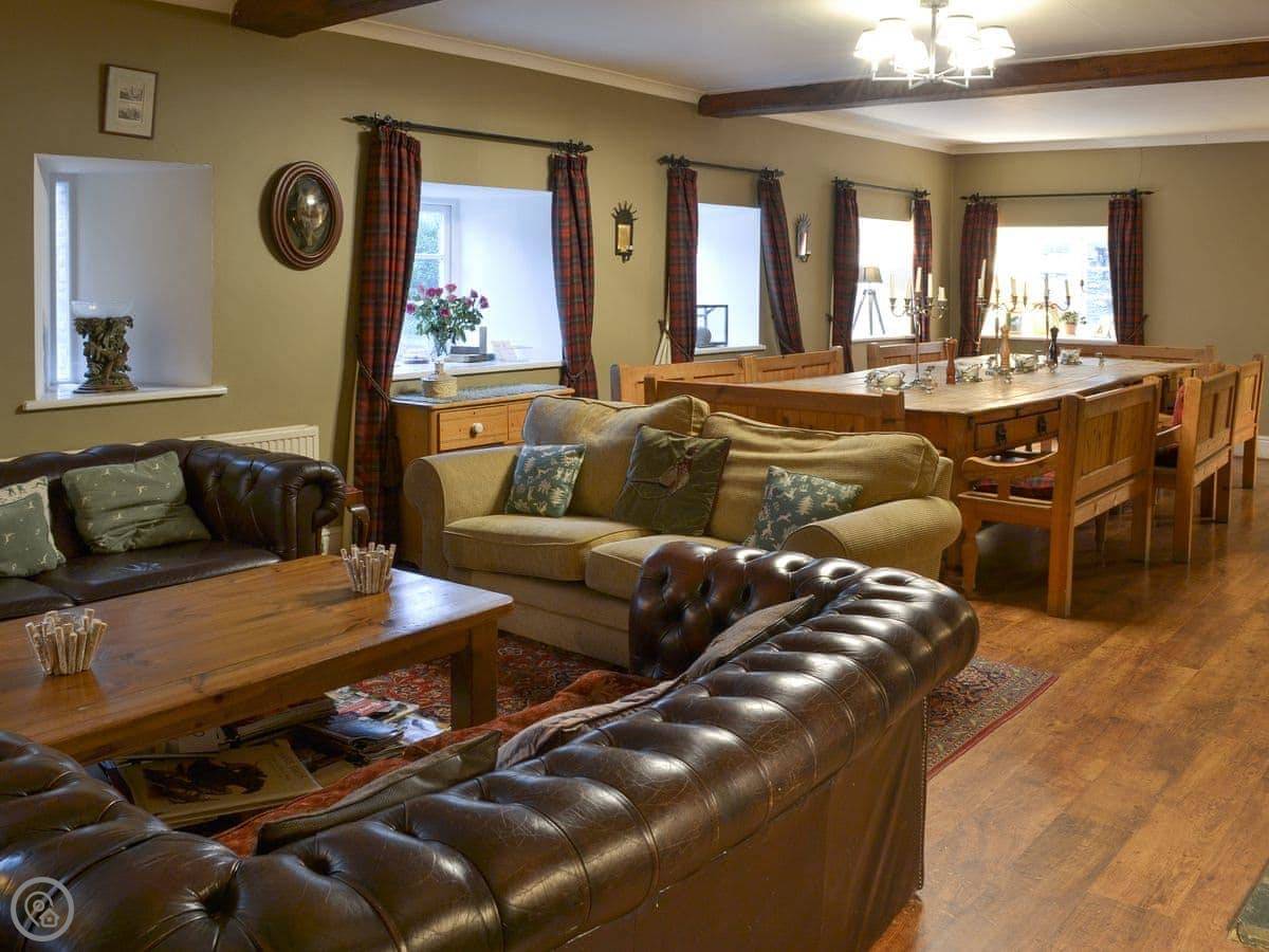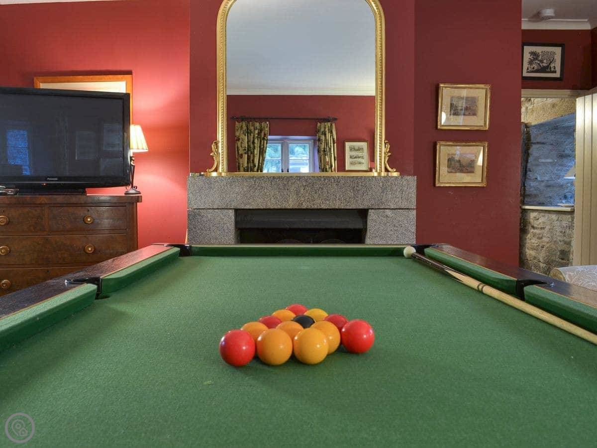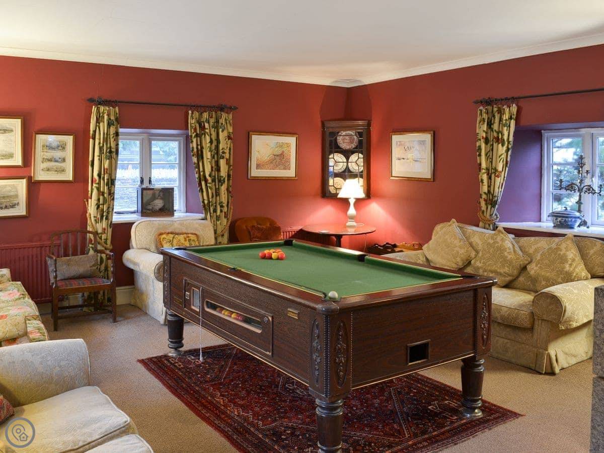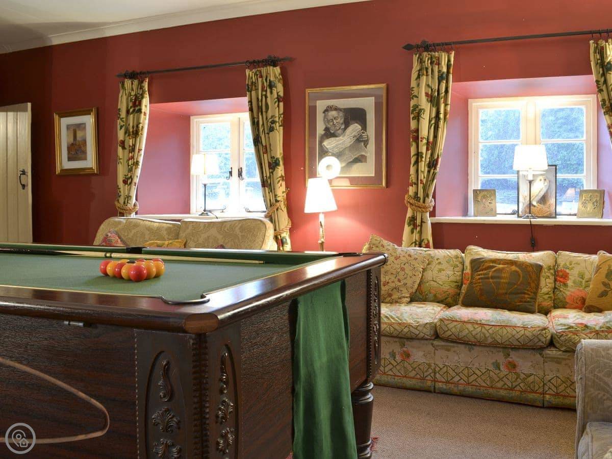 Inside, there are two sitting rooms and a games room with a pool table and an open fire. The garden has a play area for children. You can bring up to two dogs.