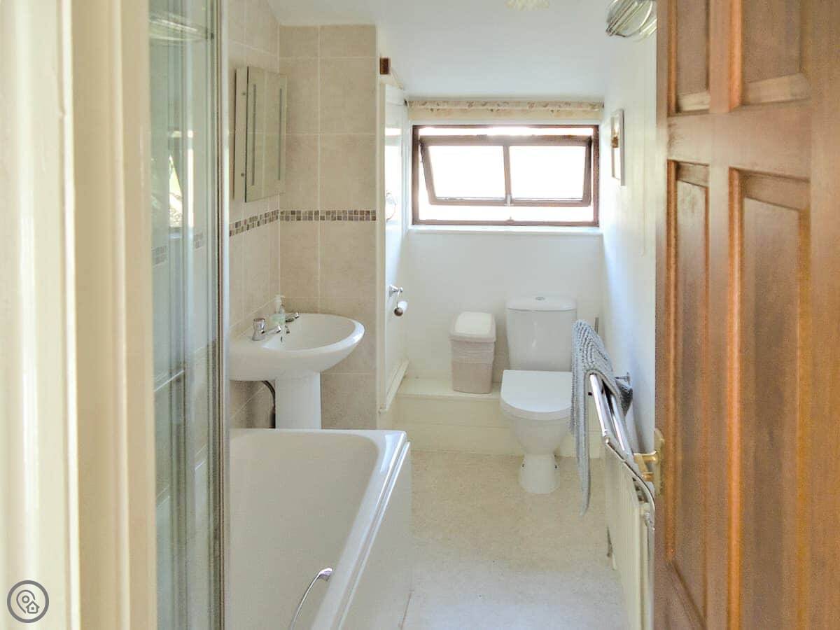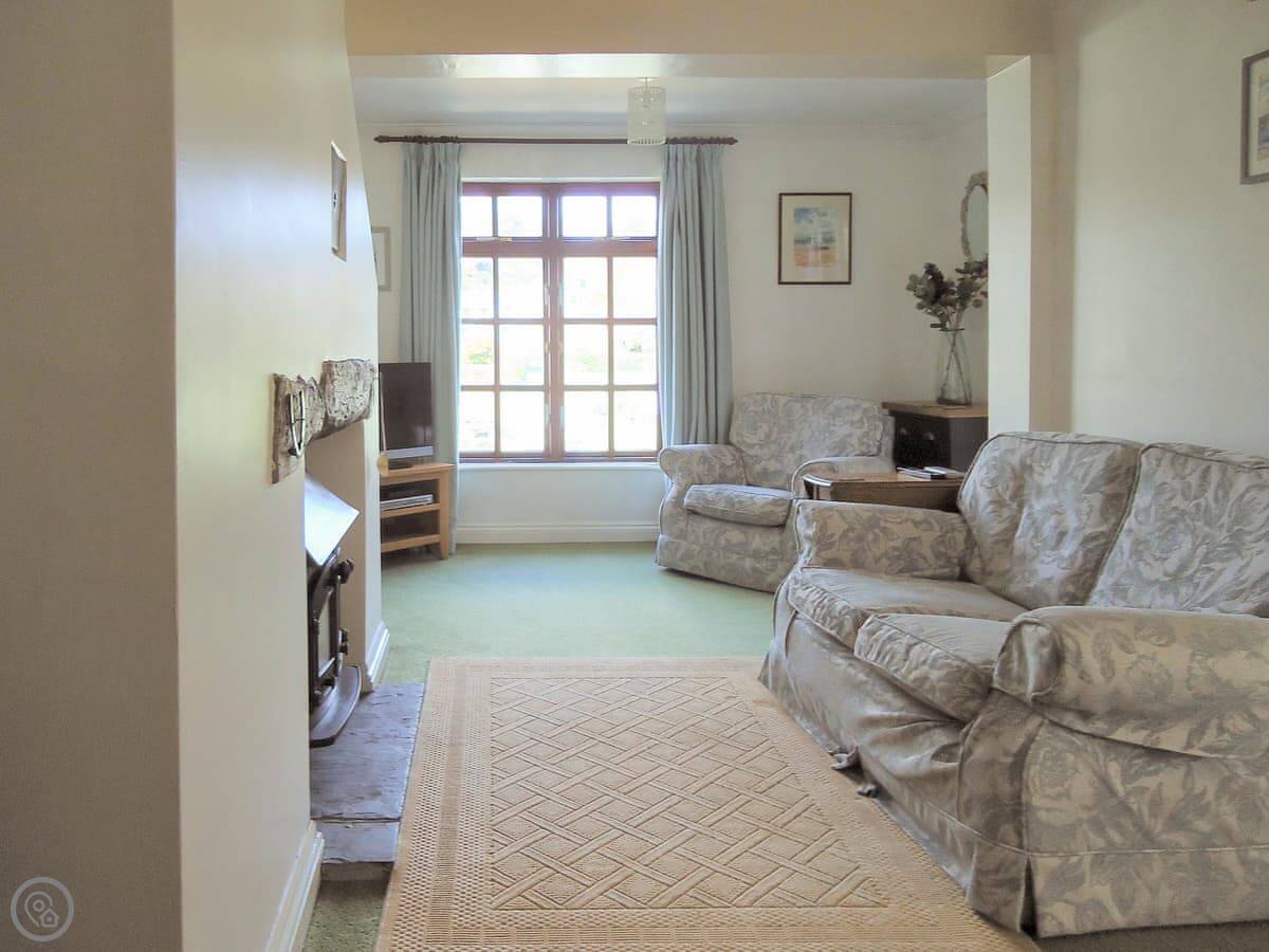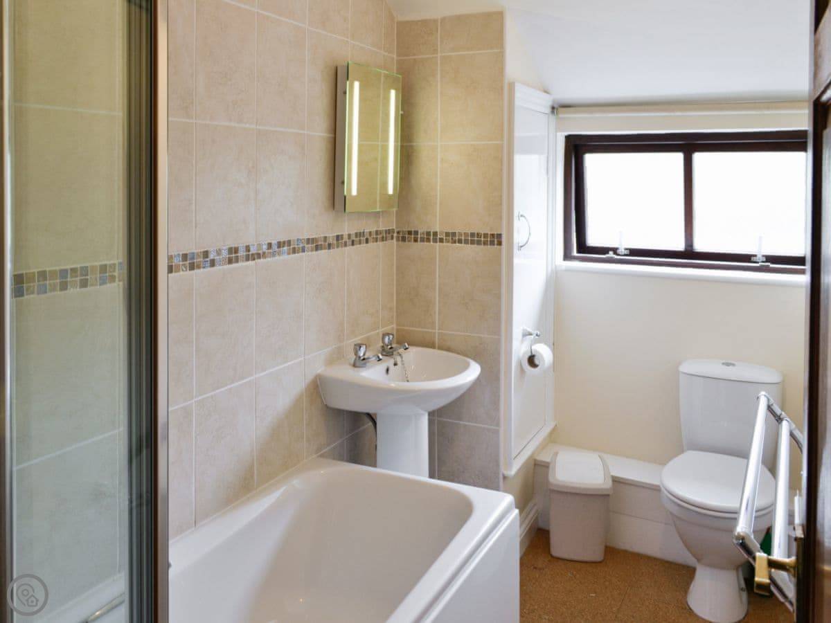 There's one bathroom with a shower. The living area is open plan, with a woodburning stove. You get a patio and a bit of garden to yourselves. There's a washing machine, WiFi, and bedding is included. We allow one dog.