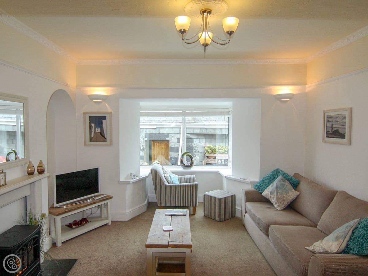 It sleeps four. Two bedrooms and one bathroom. It's got a 4 Star rating. It's bright and clean. The views are the main thing. You can see the sea from the front windows and the living room.