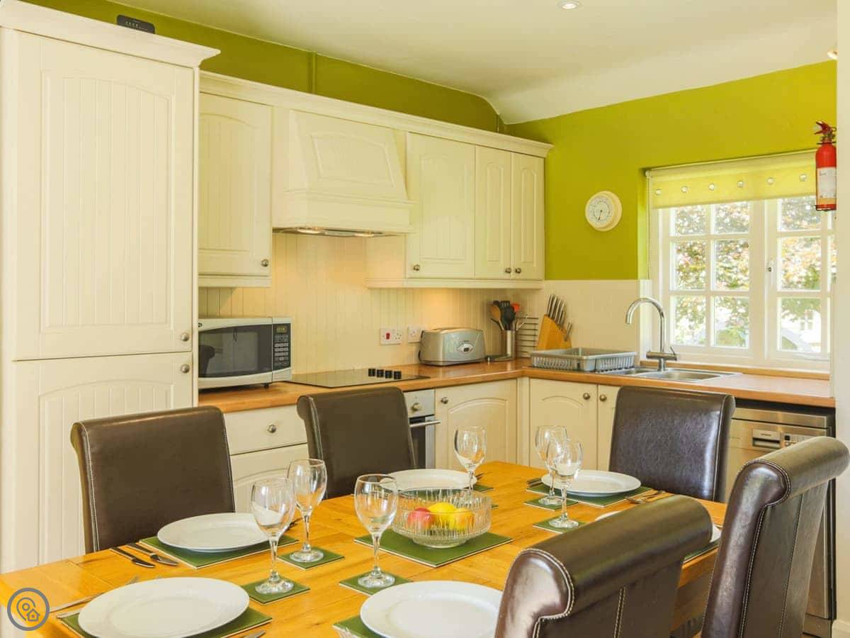 Facilities: it's got a dishwasher, washing machine, WiFi. There's a cot and highchair if you need them. Bedding is included. Plenty of parking. There's a games room on site too, which is handy if the weather turns. No pets, sorry.