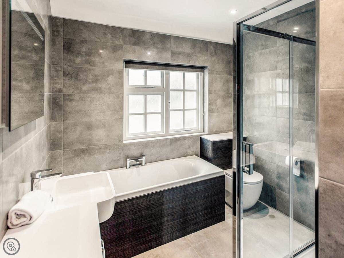 It sleeps five. Three bedrooms, two bathrooms. One of the bathrooms has a walk-in shower, which is useful. It's got a 4 Star rating. It's comfortable and well kept.