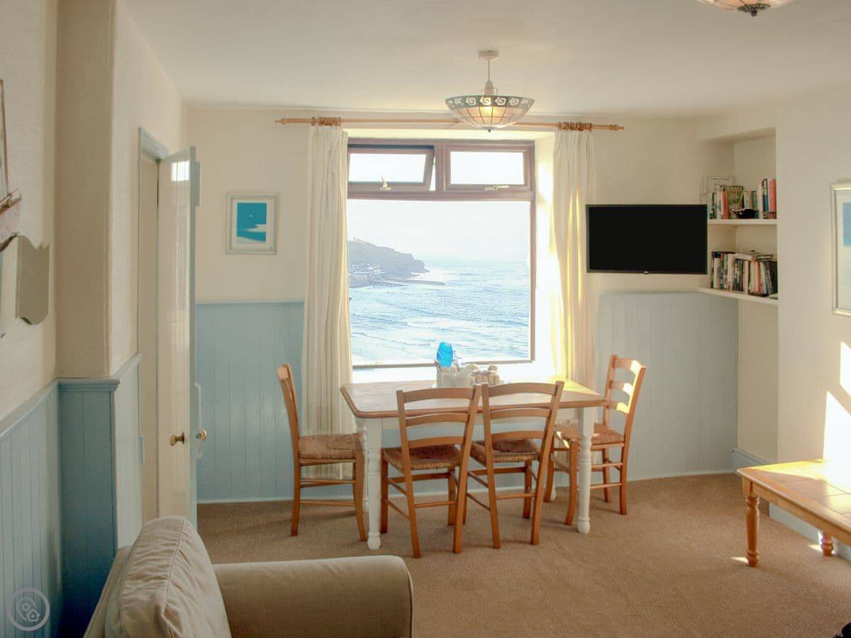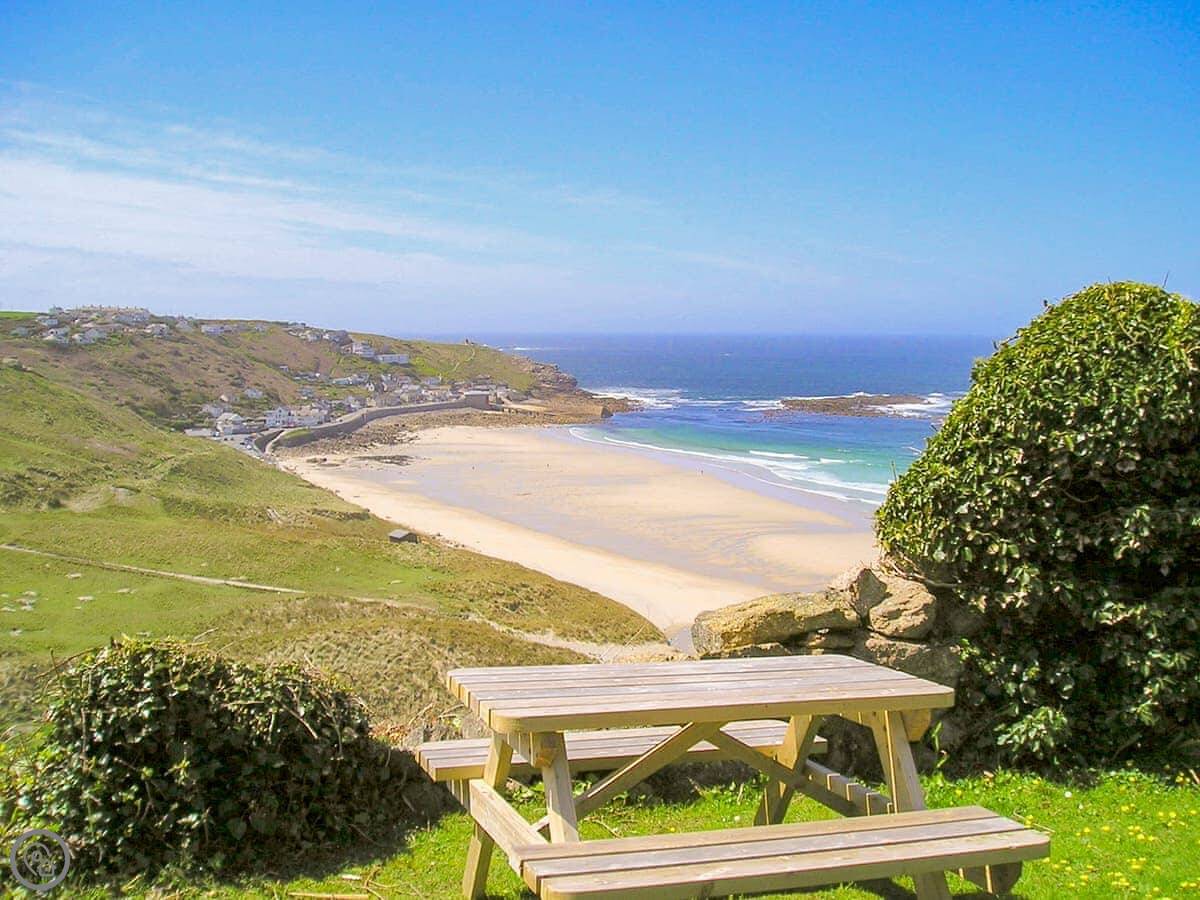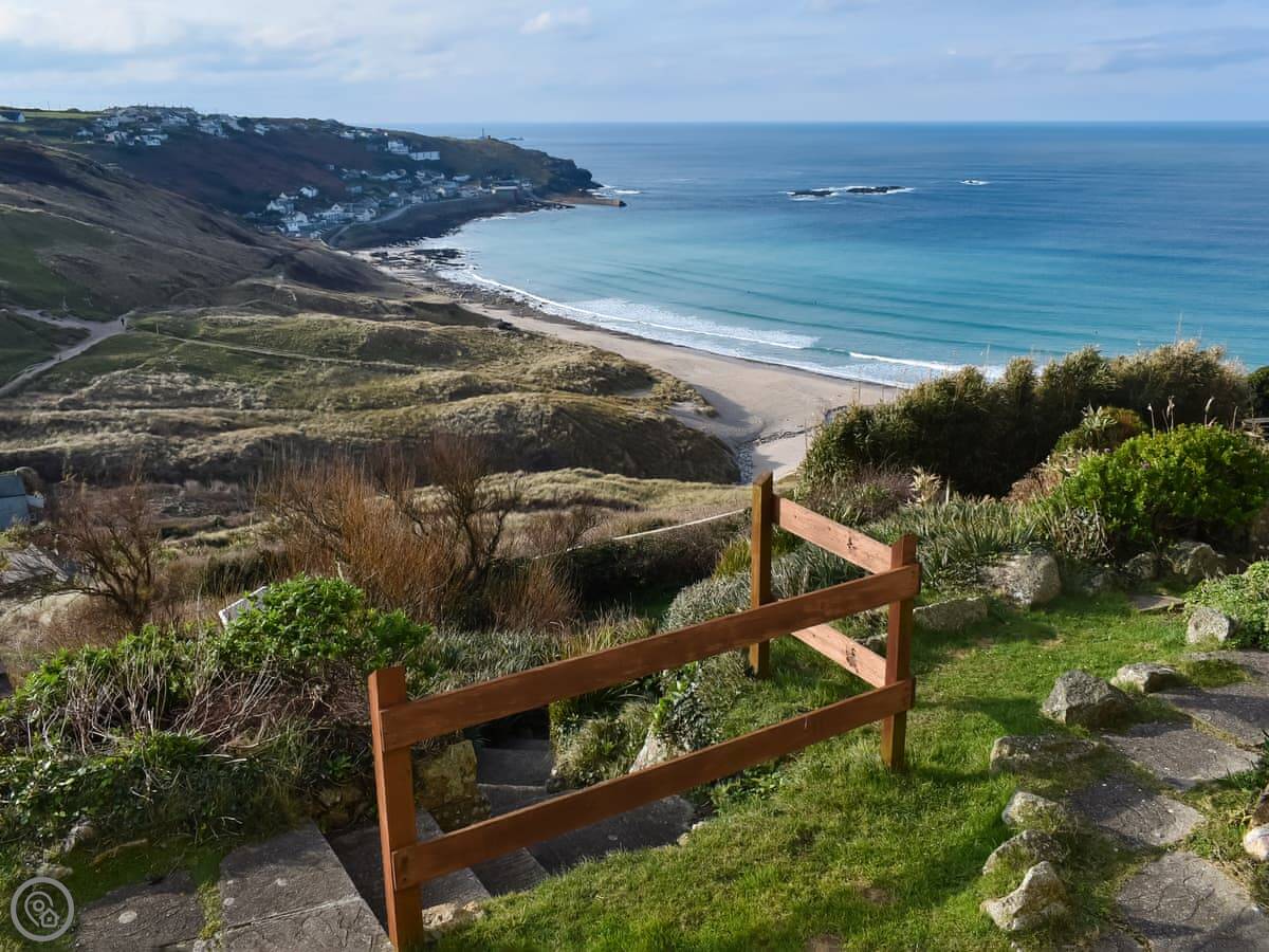 The main thing is the view. You're up on the dunes, so you look right out over Whitesand Bay and Sennen Cove. The windows in the living room make the most of it. The shared grounds are several acres of mostly wild land, so you get birds and wildlife. There's a steep private path that winds down through the grounds to the beach.