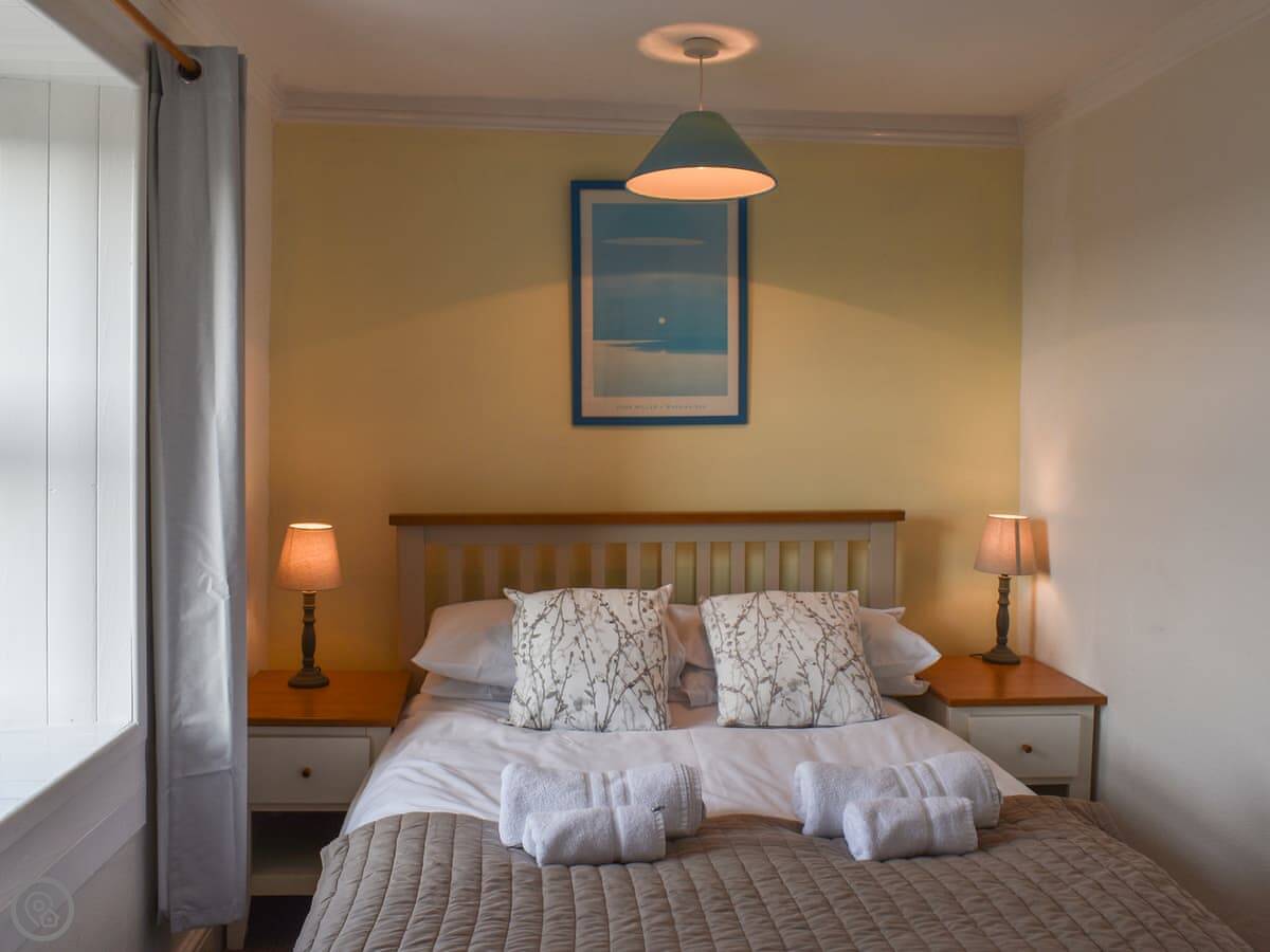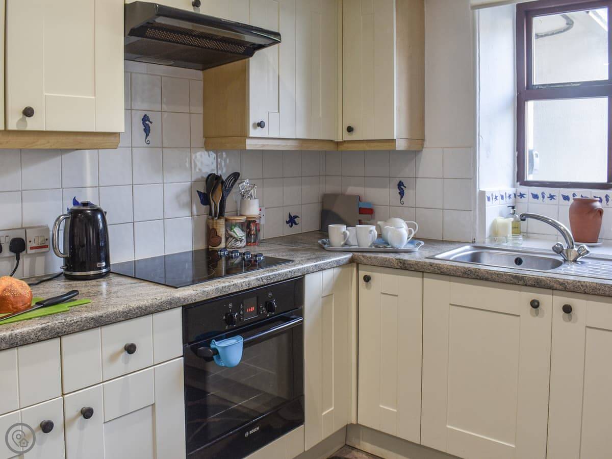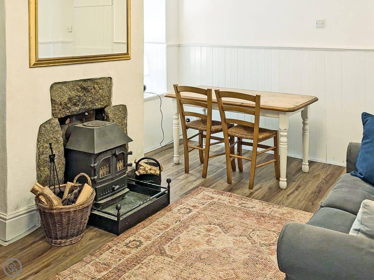The cottage itself is one of a row, converted from a Victorian house. You get three bedrooms, sleeps five, and one bathroom. It has a 4 Star rating. It's comfortable and has everything you'd need, like a dishwasher and a washing machine. There's a woodburning stove for cooler evenings and the heating is good throughout.
