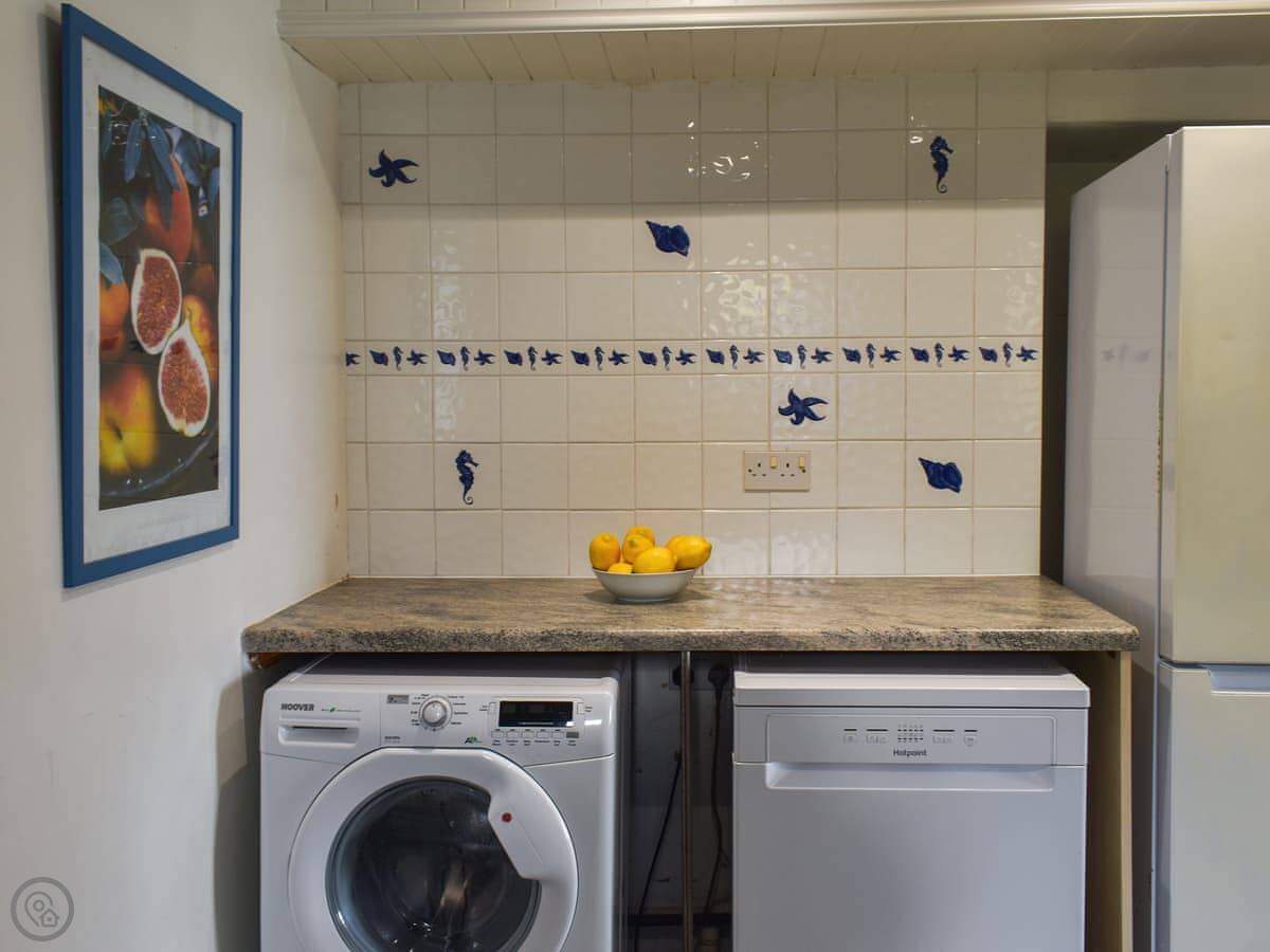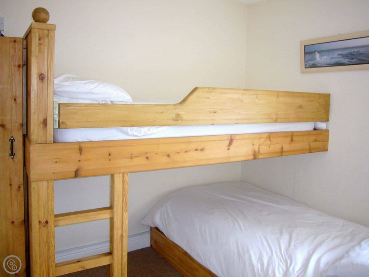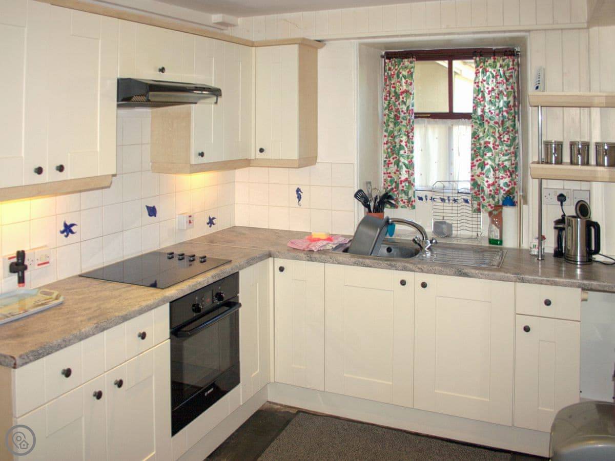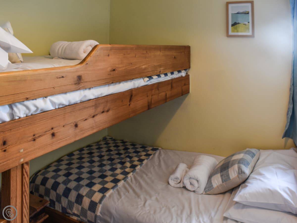 The cottage itself is one of a row, converted from a Victorian house. You get three bedrooms, sleeps five, and one bathroom. It has a 4 Star rating. It's comfortable and has everything you'd need, like a dishwasher and a washing machine. There's a woodburning stove for cooler evenings and the heating is good throughout.