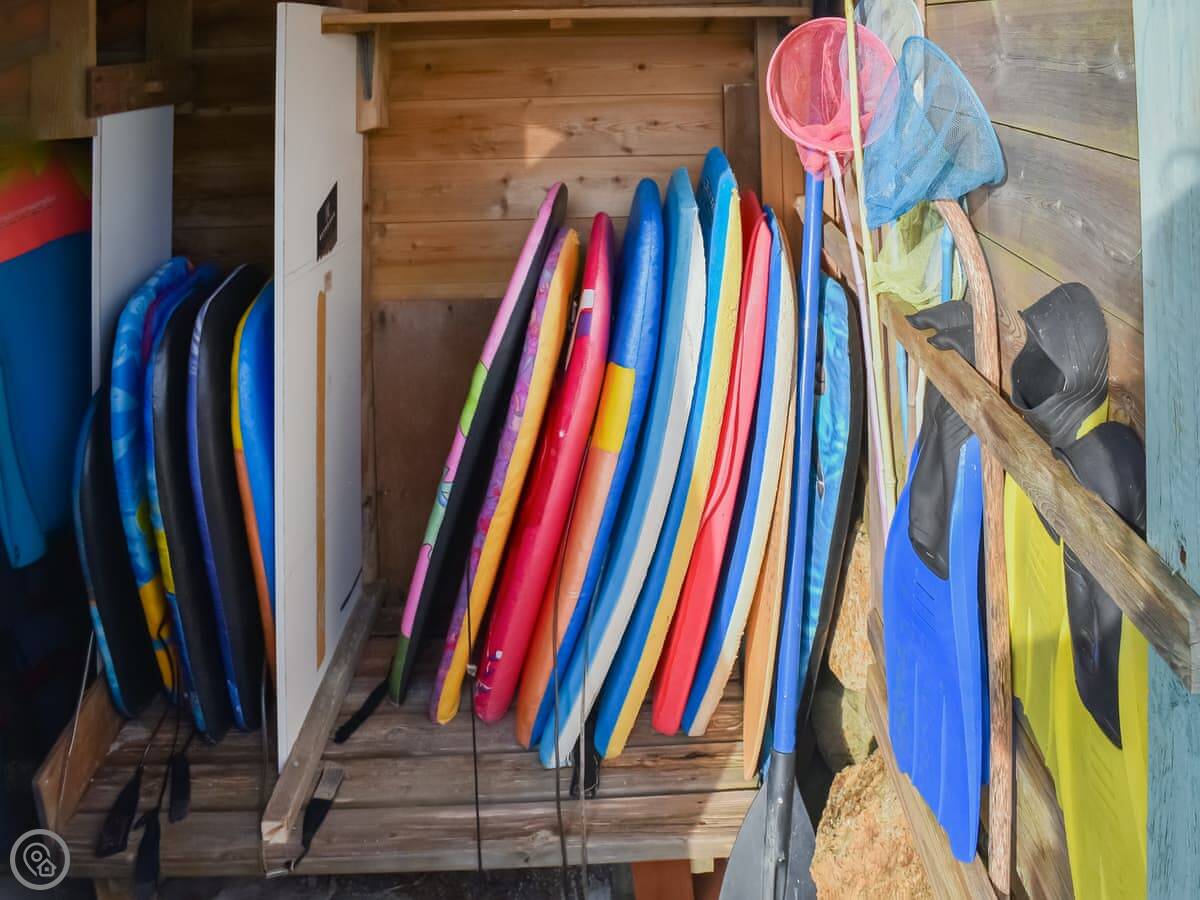 We keep some free beach gear you can borrow, like bodyboards, and there's storage if you've brought your own surfboards.
