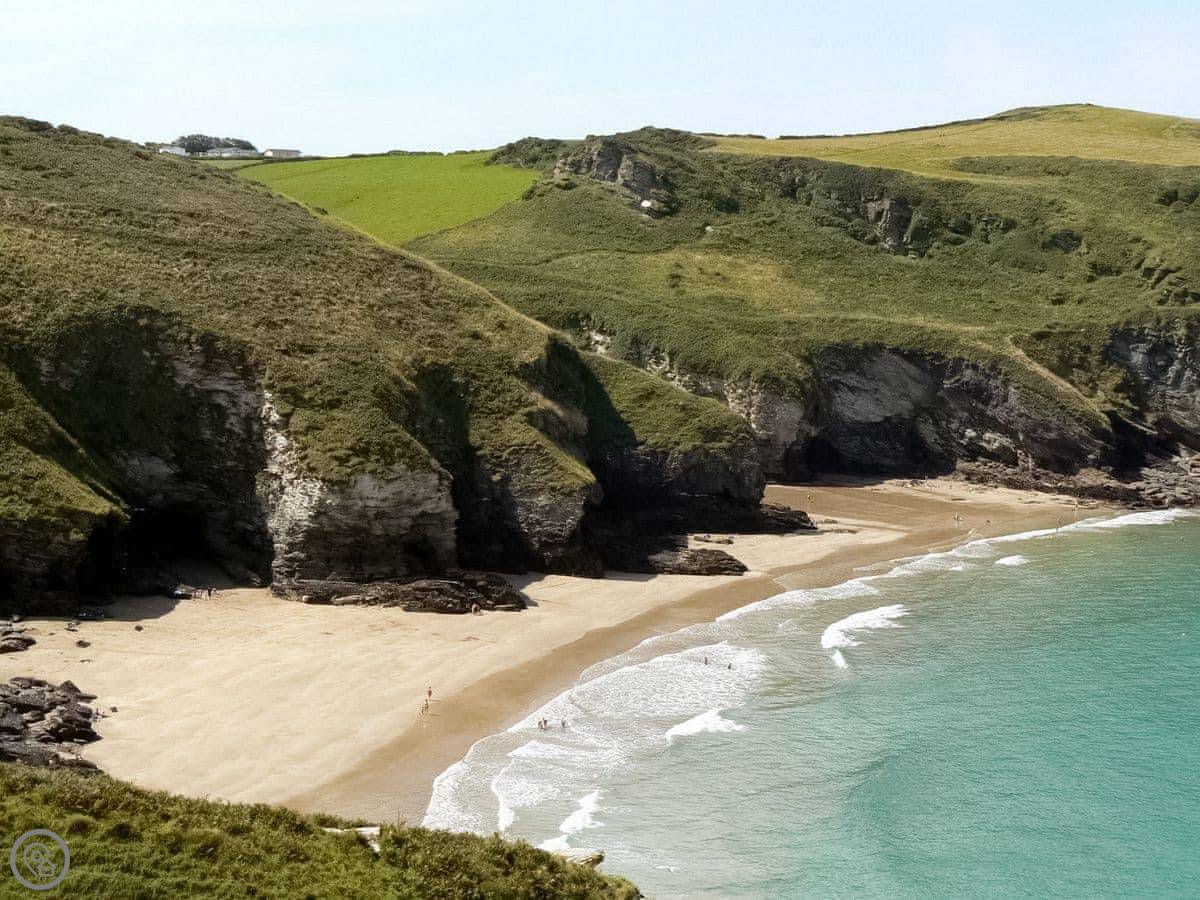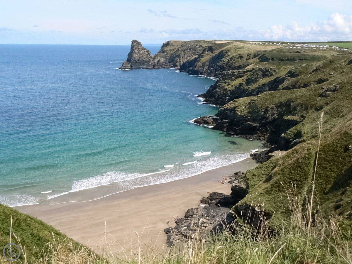 Tintagel village centre is about a mile away. That's where the shop and a few restaurants are. There's a local pub within a mile's walk as well. The big draw there is Tintagel Castle, run by English Heritage. It's the legendary site of King Arthur's castle. The beach is about a mile down the hill too, a long sandy one.