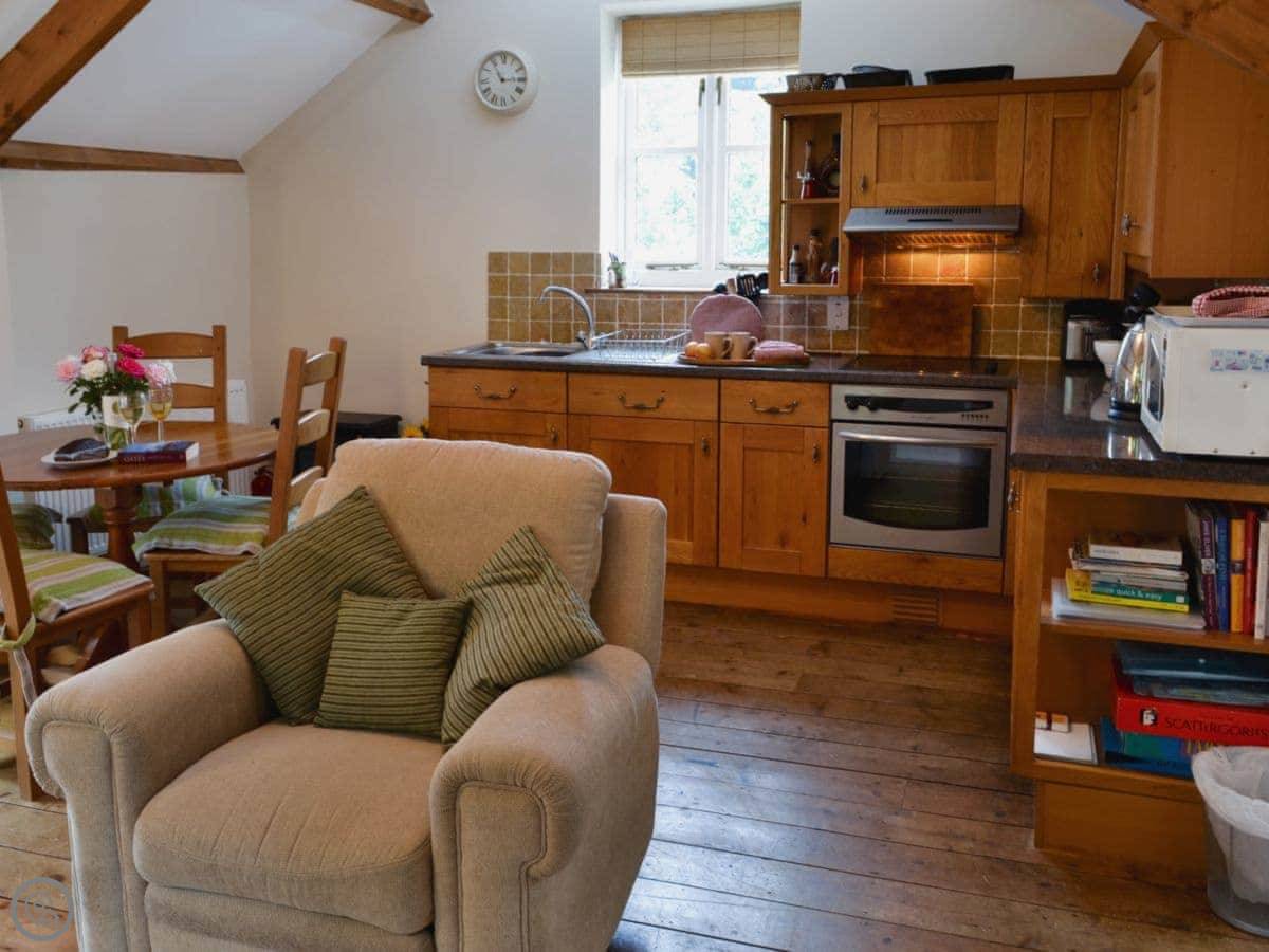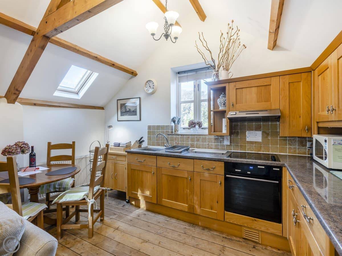 It sleeps two. One bedroom, one bathroom. It's got a 4 Star rating, which means it's comfortable and everything works. It's open plan downstairs. The kitchen's been done well so you can cook properly.