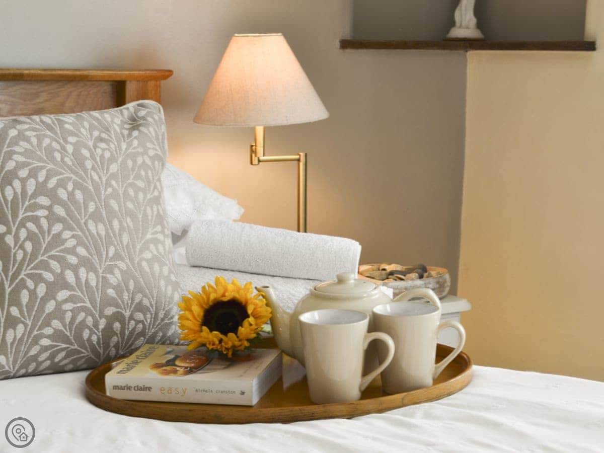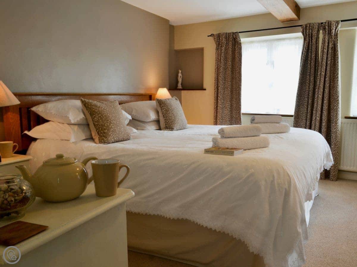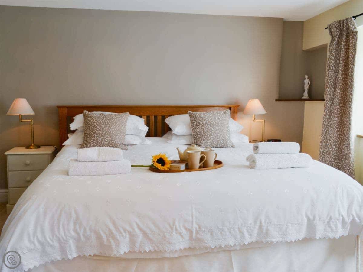 For facilities: there's parking right there, a washing machine, WiFi, TV, and a fully enclosed garden. Bedding and towels are included. You can bring two dogs. They get a little welcome pack.