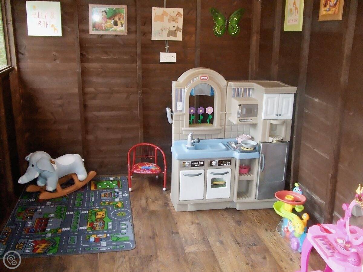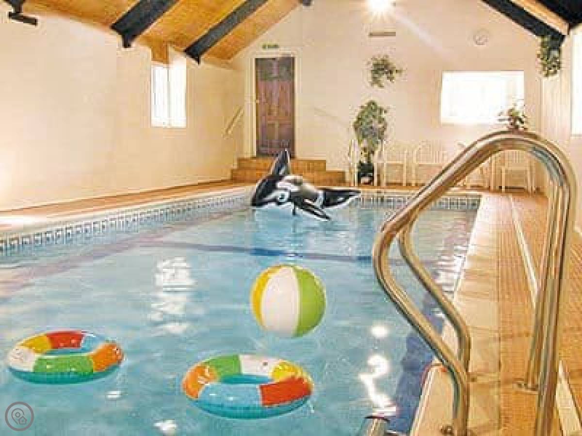 On site, there's a shared indoor swimming pool. It's kept warm. You can book it for just your group if you want. There's a games room with pool and table football. Outside, there's a fenced play area by the river for kids, with swings and a climbing frame. There are also peacocks that wander around the gardens.