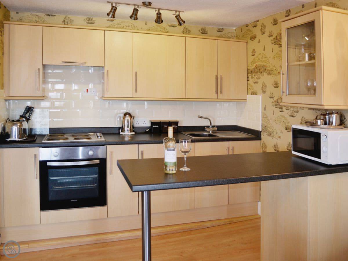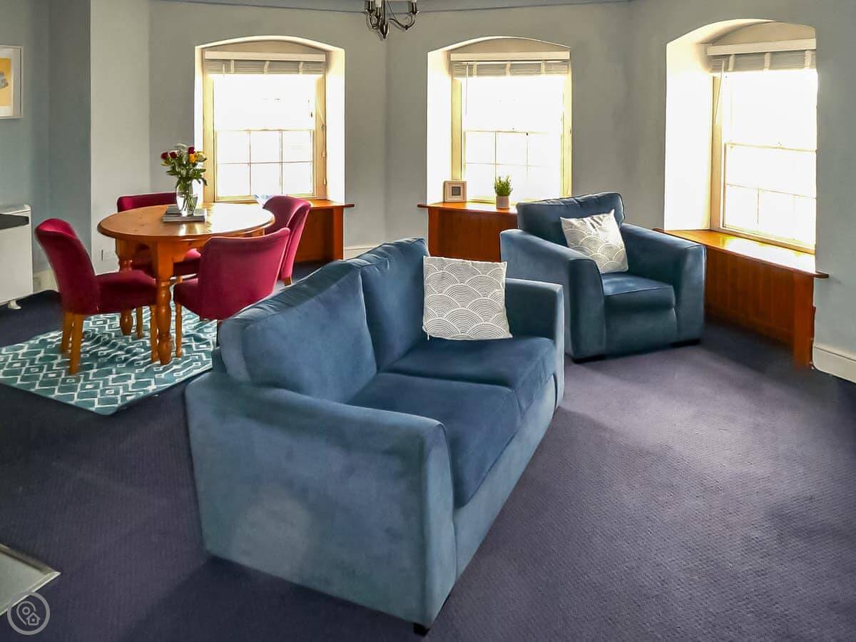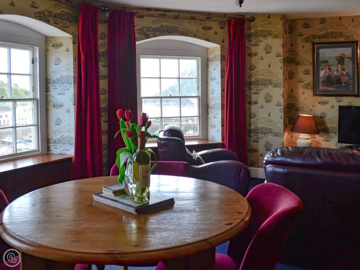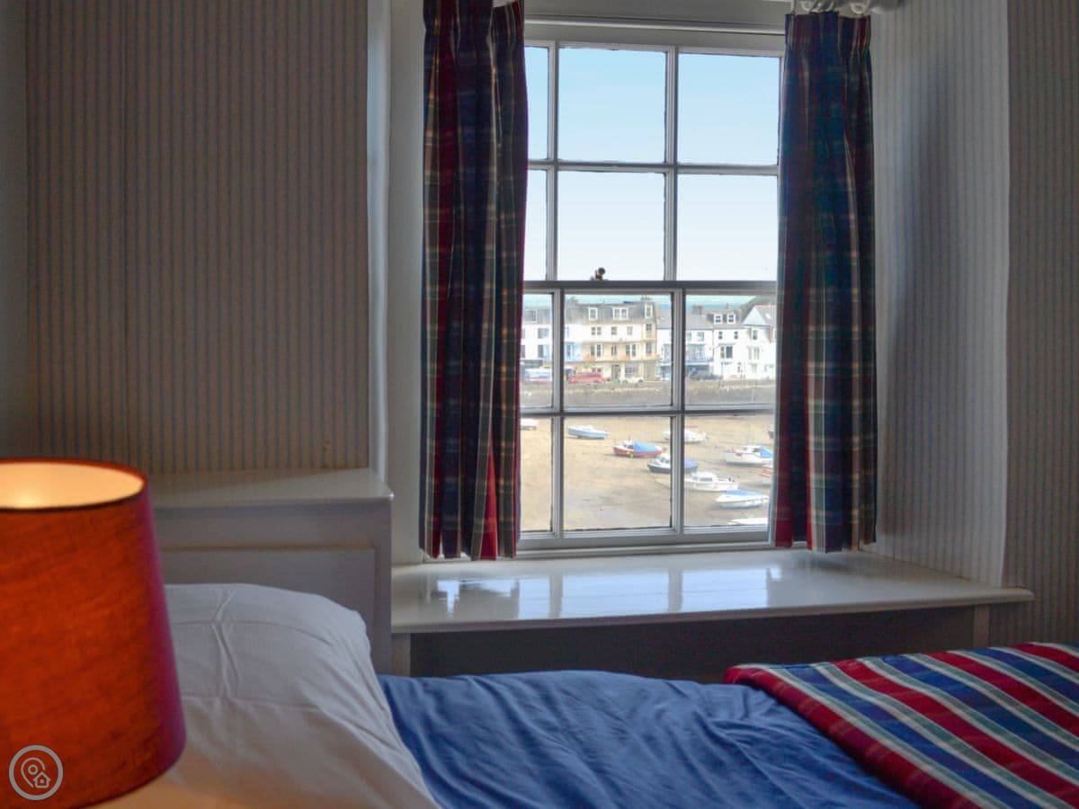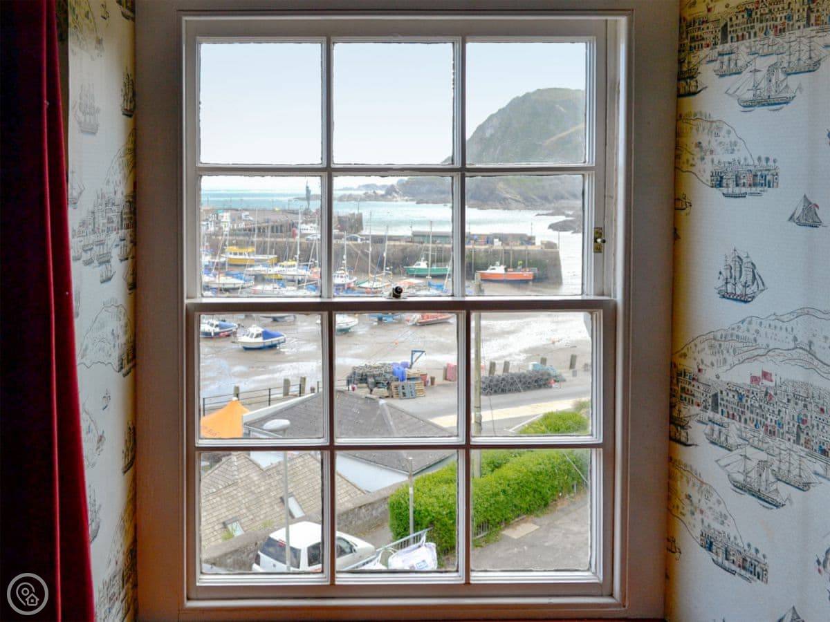 Hornblower is one of the apartments in The Admiral's House. It's on the harbour in Ilfracombe. You've got the water right there, and a view of the harbour and the beach from the windows.