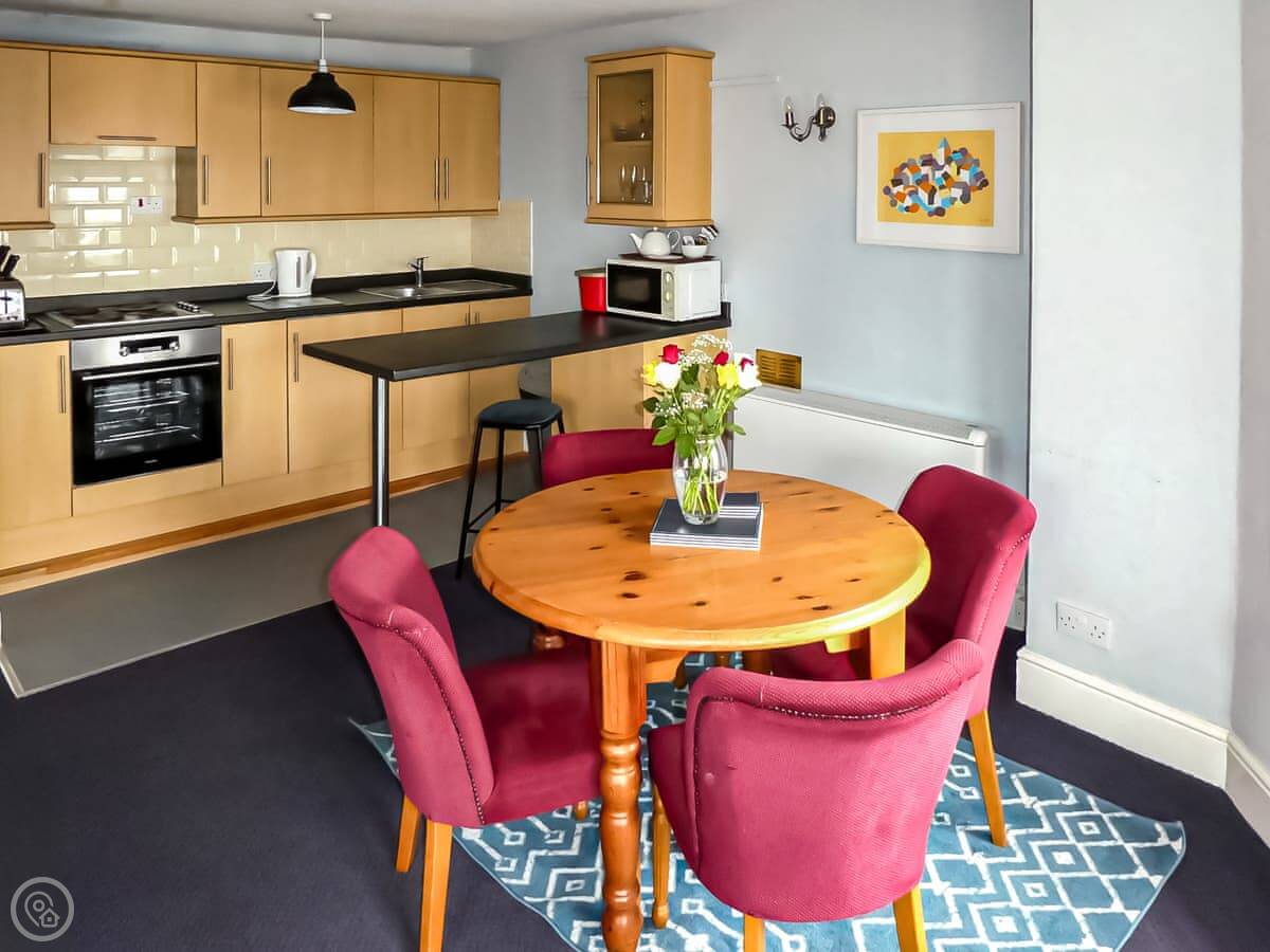 It sleeps four. Two bedrooms and one bathroom. It's got a 4 Star rating. Everything in the apartment is open plan.