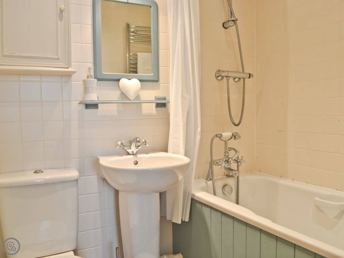 It sleeps four. Two bedrooms, both with their own bathrooms, which is handy. It's got a 4 Star rating. It's decorated in a light, seaside sort of way.