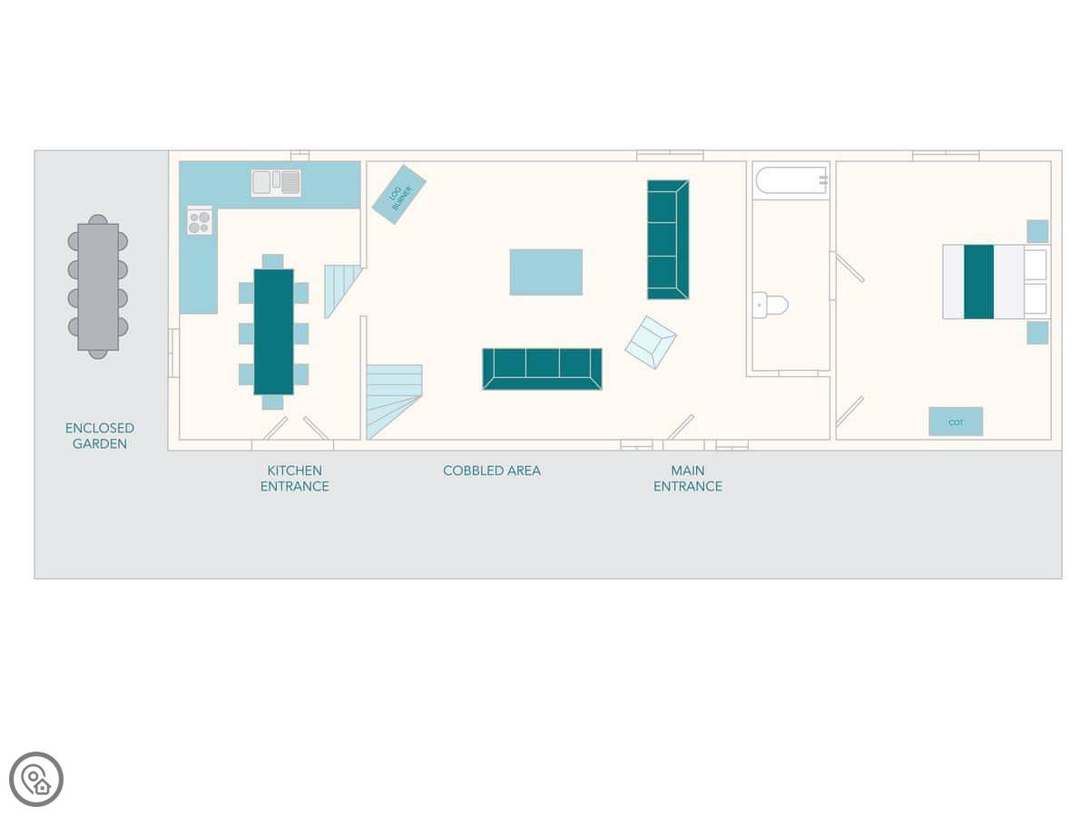It’s a good spot for Dartmouth, which is five miles. Totnes is close by for the town and market. For the coast, Blackpool Sands is about a twenty-minute drive. Bantham, for surfing, is about thirty minutes.