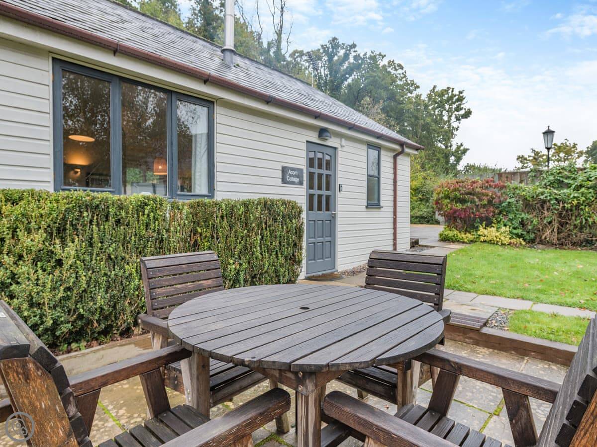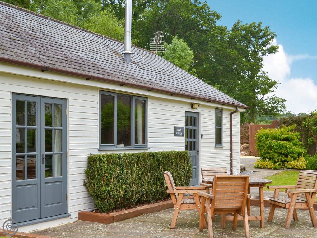 Acorn Cottage is one of four places here at Little Dunley, just outside Bovey Tracey. We're on the eastern edge of Dartmoor, so it's quiet. The cottage itself is detached, sleeps four, has two bedrooms and two bathrooms. It's got a 4 Star rating, so it's comfortable and well-finished.