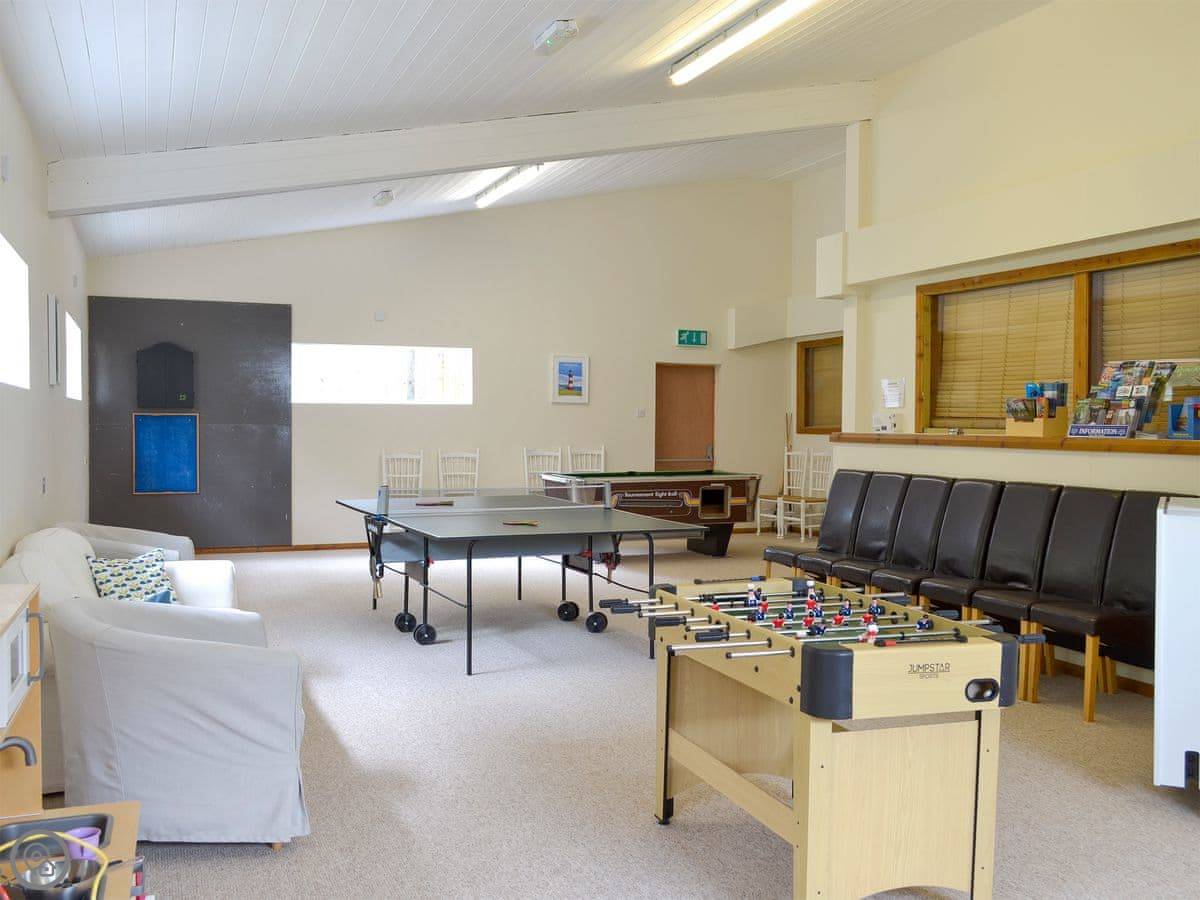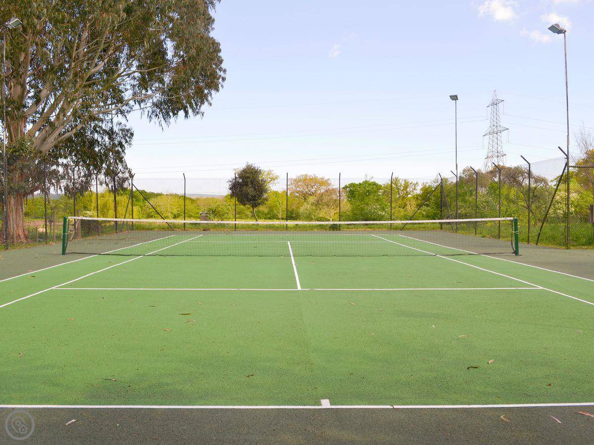 The main thing here is the shared facilities. There's a heated indoor swimming pool with a sauna. There's a games room with pool, table tennis, that sort of thing. Outside, there's an all-weather tennis court and a carp fishing lake in the meadow. The whole site is about 24 acres.