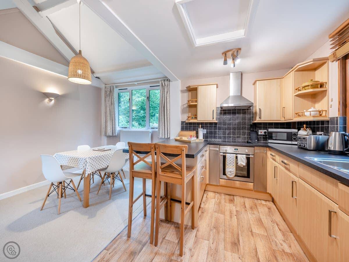 You've got your own enclosed garden with a barbecue and table. Inside, there's a wood burner for cooler evenings. The heating and hot water for all the cottages and the pool comes from a biomass boiler, and we have solar panels. We draw our own water from a borehole.