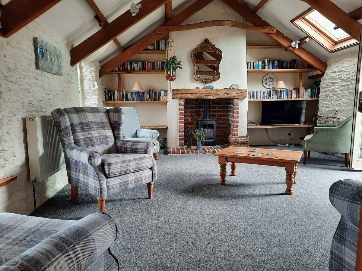 It's got a 4 Star rating. It's comfortable and well-equipped, not luxurious. The main room is open plan with a wood burner. It gets the sun in the afternoon. The garden is enclosed, which is handy.