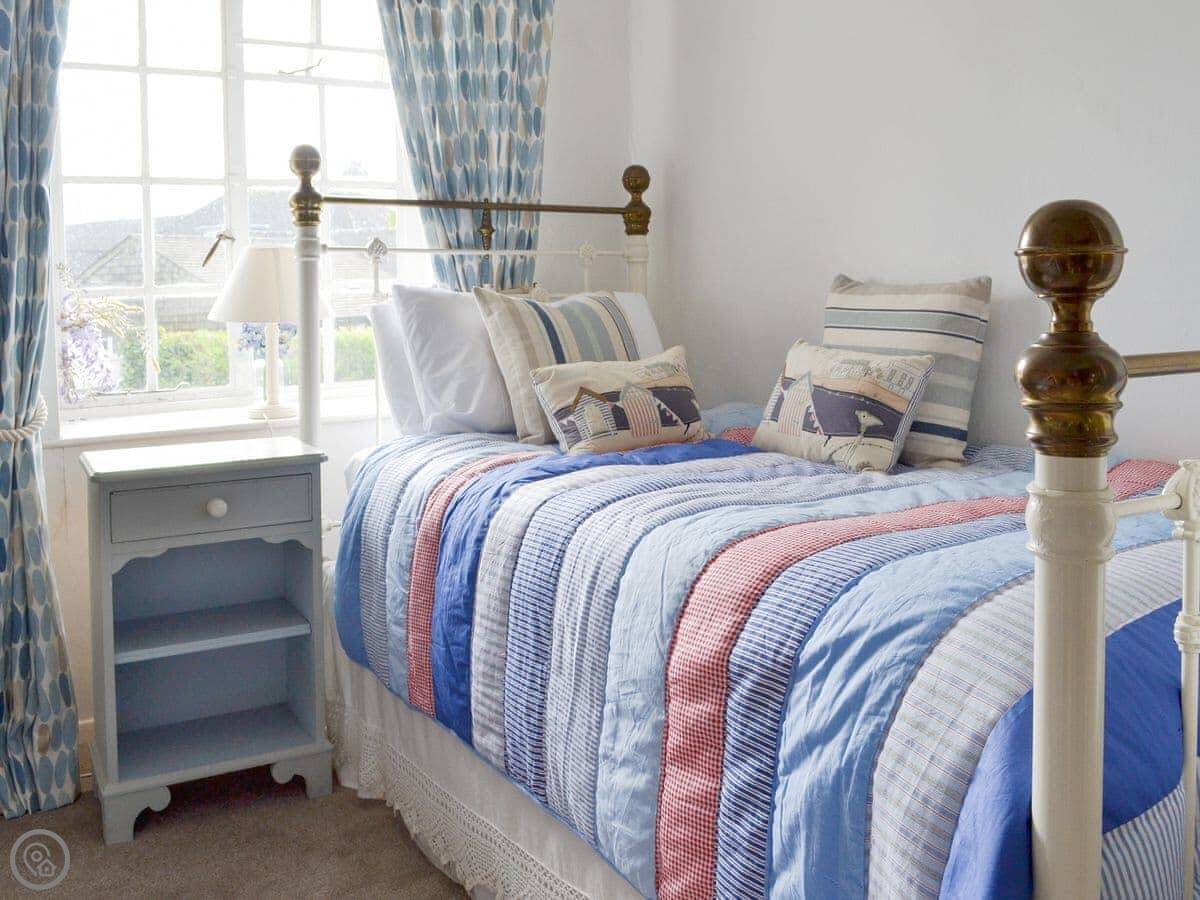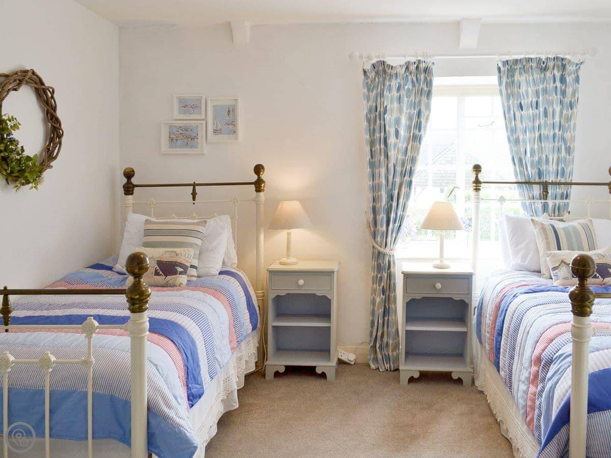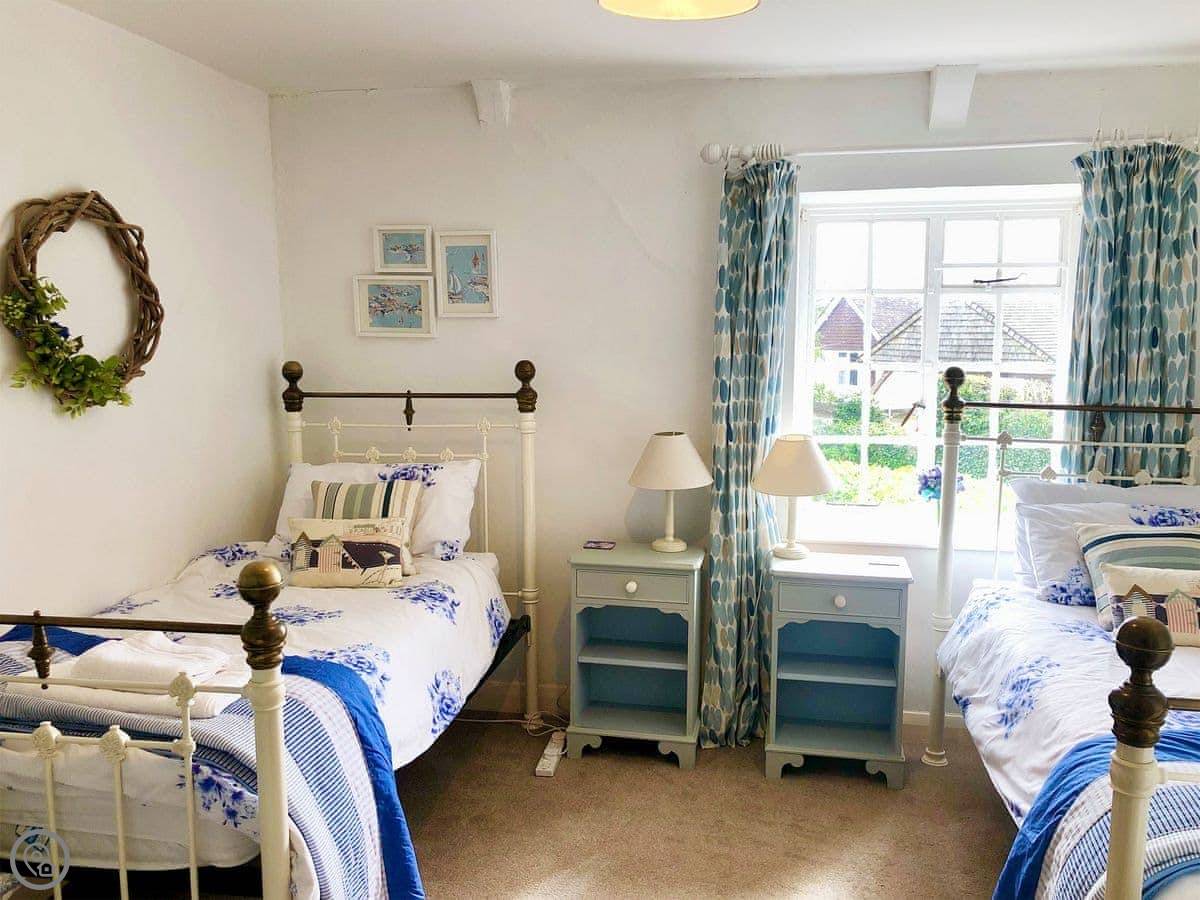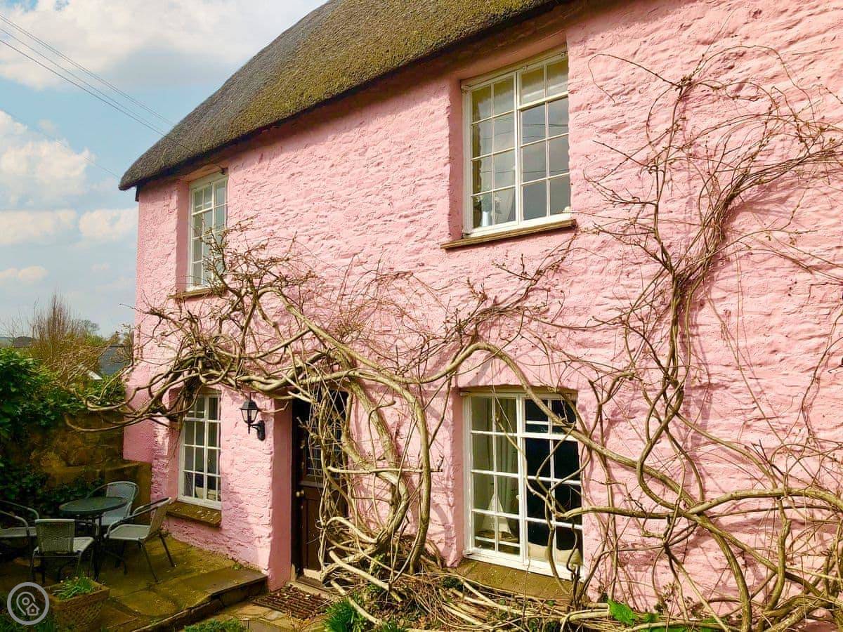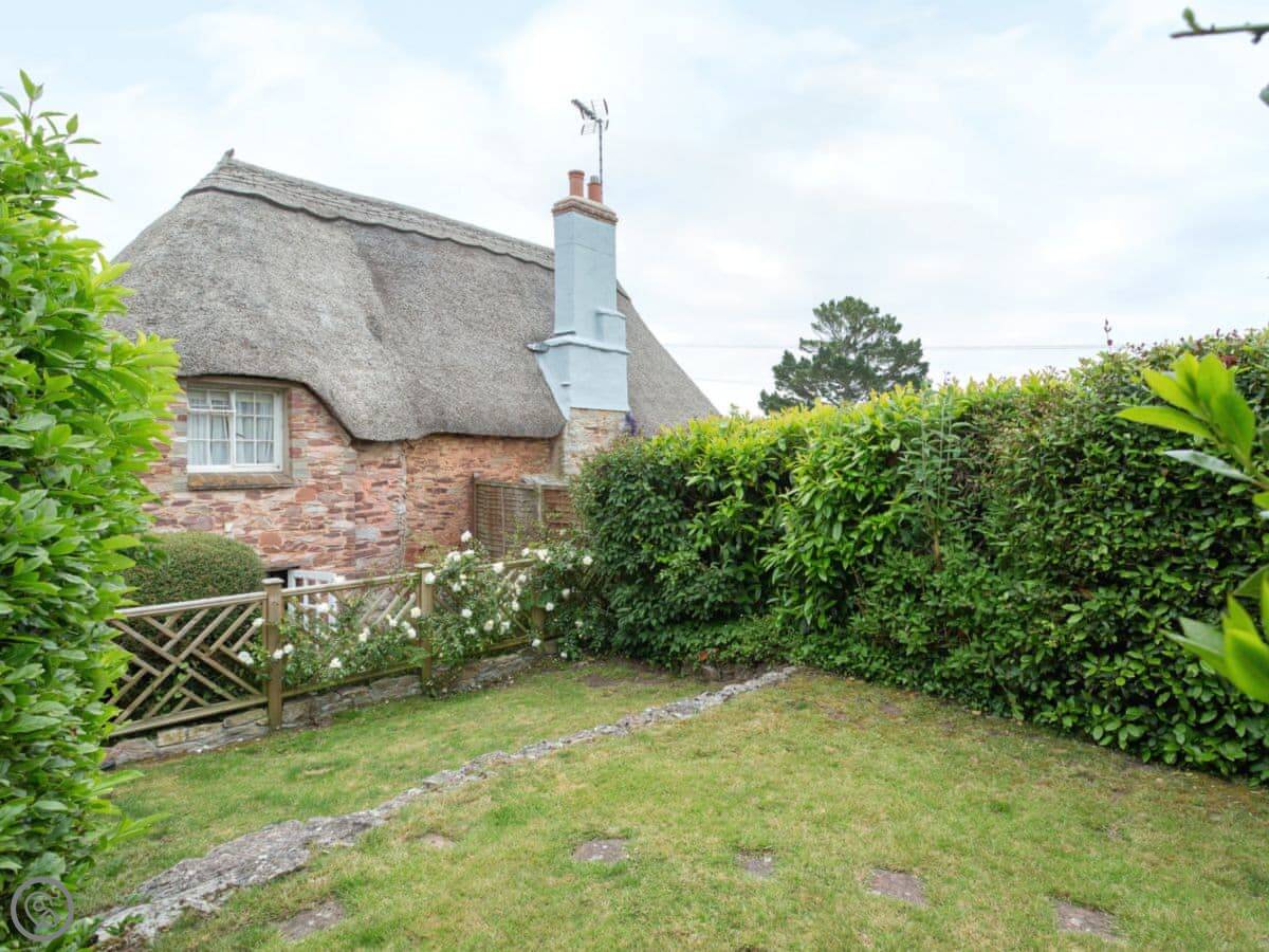 This is Laurel Cottage in Stoke Gabriel. It’s a thatched place, detached, so it’s just you. It sleeps four across two bedrooms, and there are two bathrooms, which is quite handy.