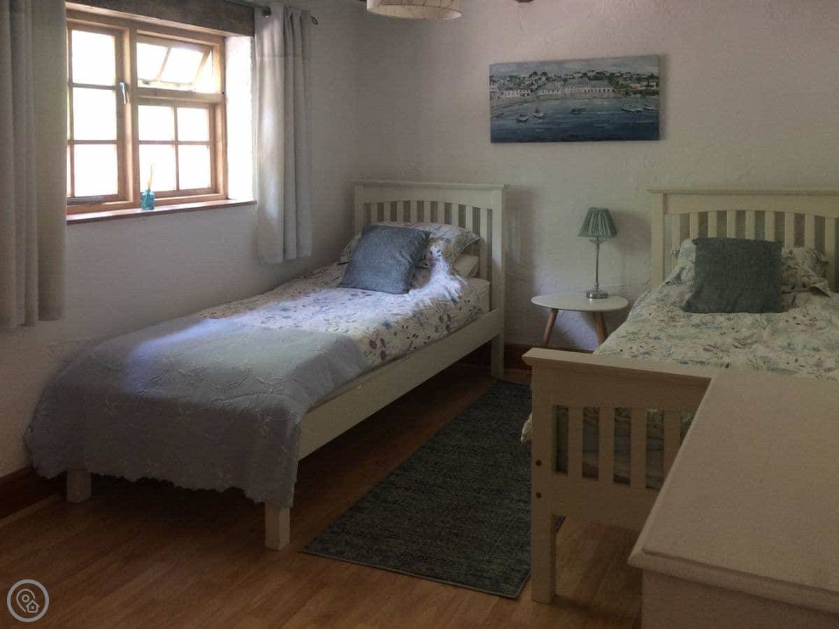 It sleeps four. Two bedrooms and one bathroom. It's got a 4 Star rating, so it's a bit nicer than basic, comfortable. Most things are on the ground floor, which is handy.