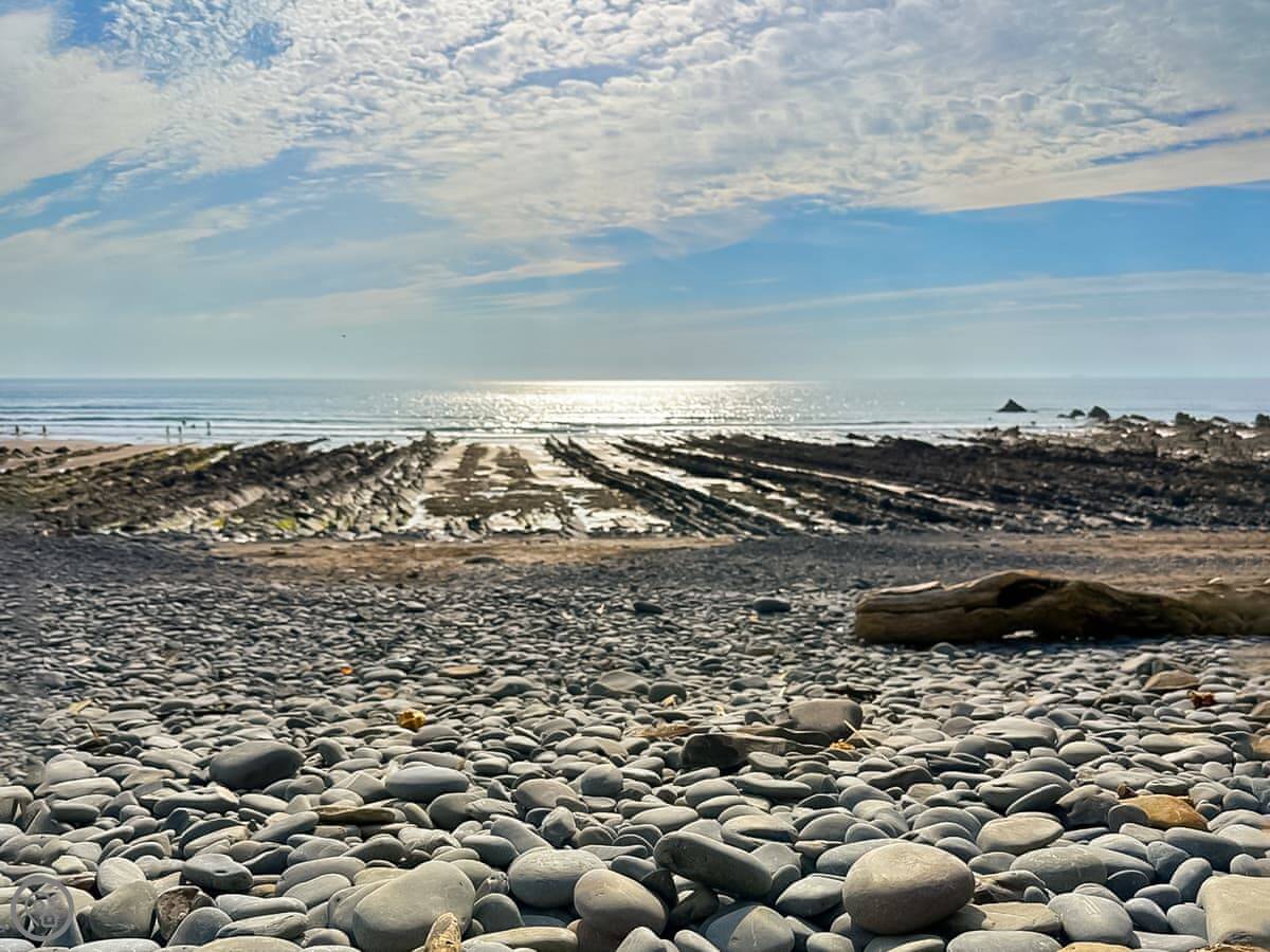 Hartland Village is about three miles. There's a shop there, and a few pubs within a five mile drive. The nearest beach is about two miles. It's rocky. For a sandy beach, you'd drive towards Bude or down towards Westward Ho!