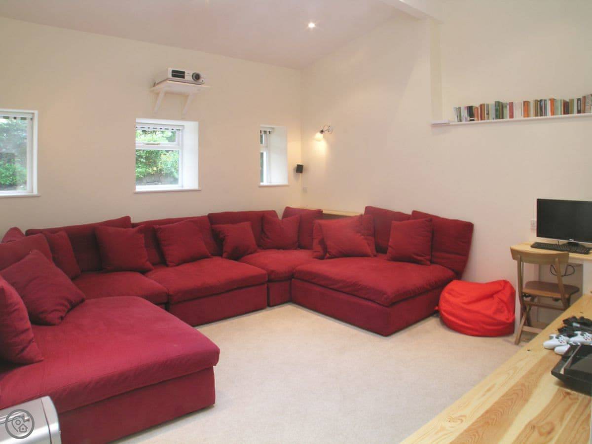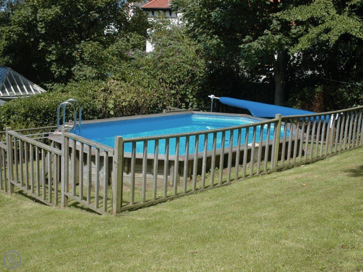 Outside, there's a good sized garden, a patio area with a fire pit, and an outdoor heated swimming pool. It's fenced. The pool is heated from May to the end of September. There's also a hot tub. Inside, there's a cinema room with a big screen and projector. It's got gaming consoles too, if that's your thing.