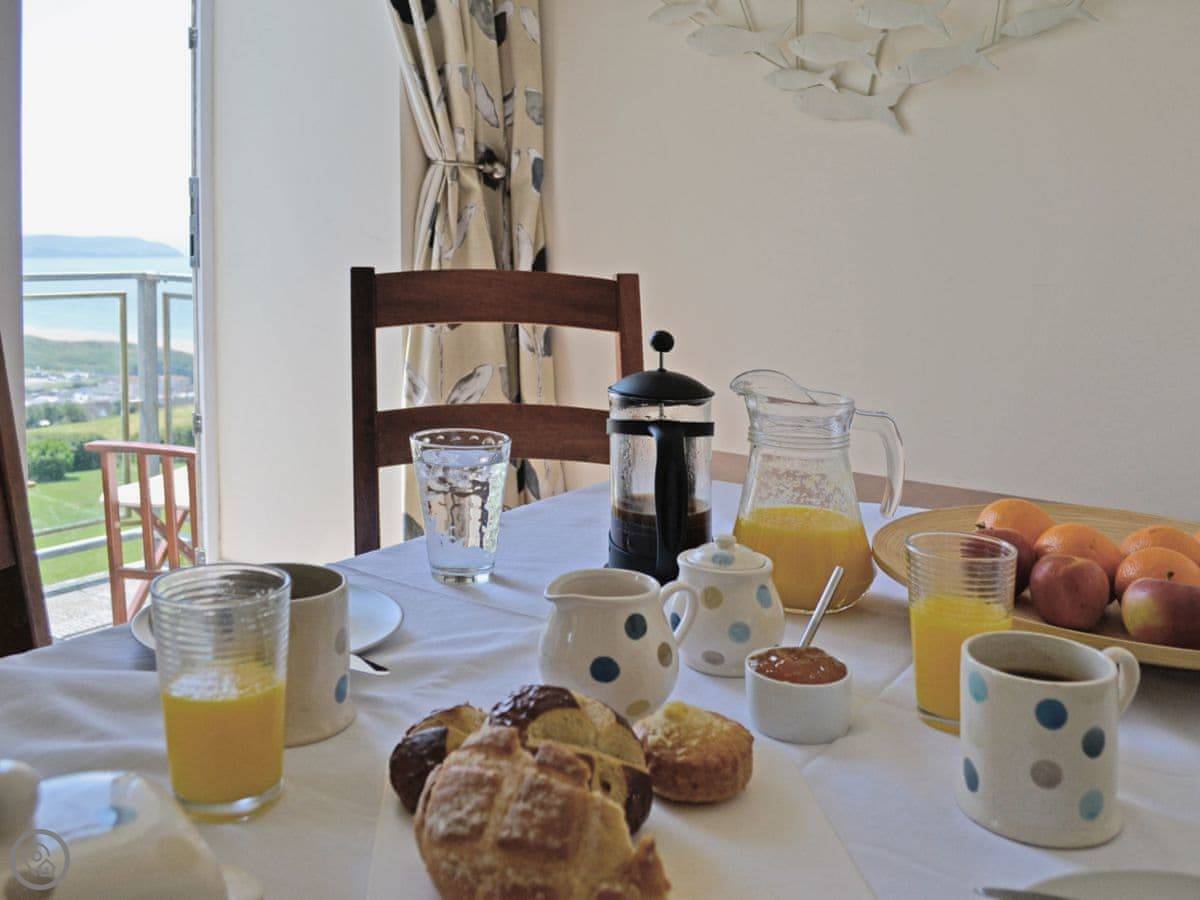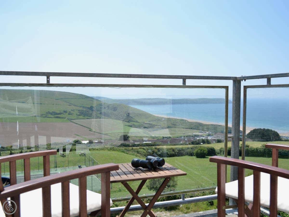 This holiday property is situated in a desirable elevated postition with stunning views extending from National Trust countryside to the glorious 3 mile Woolacombe beach, Putsborough, Baggy Point and across the channel to Lundy Island. The extensive surf washed golden sands of Woolacombe, unquestionably one of the finest Blue Flag beaches in Britain, is just a short walk away. Woolacombe village itself is lively and popular with all age groups, offering a selection of pubs, restaurants, shops, amusements. A network of coastal footpaths can be taken from your doorstep. Ilfracombe, Lee Bay, the remaining Golden Coast beaches of Croyde, Saunton and Exmoor National Park are a short drive away. Woolacombe beach ½ mile. Shop 100 yards and pub ½ mile.