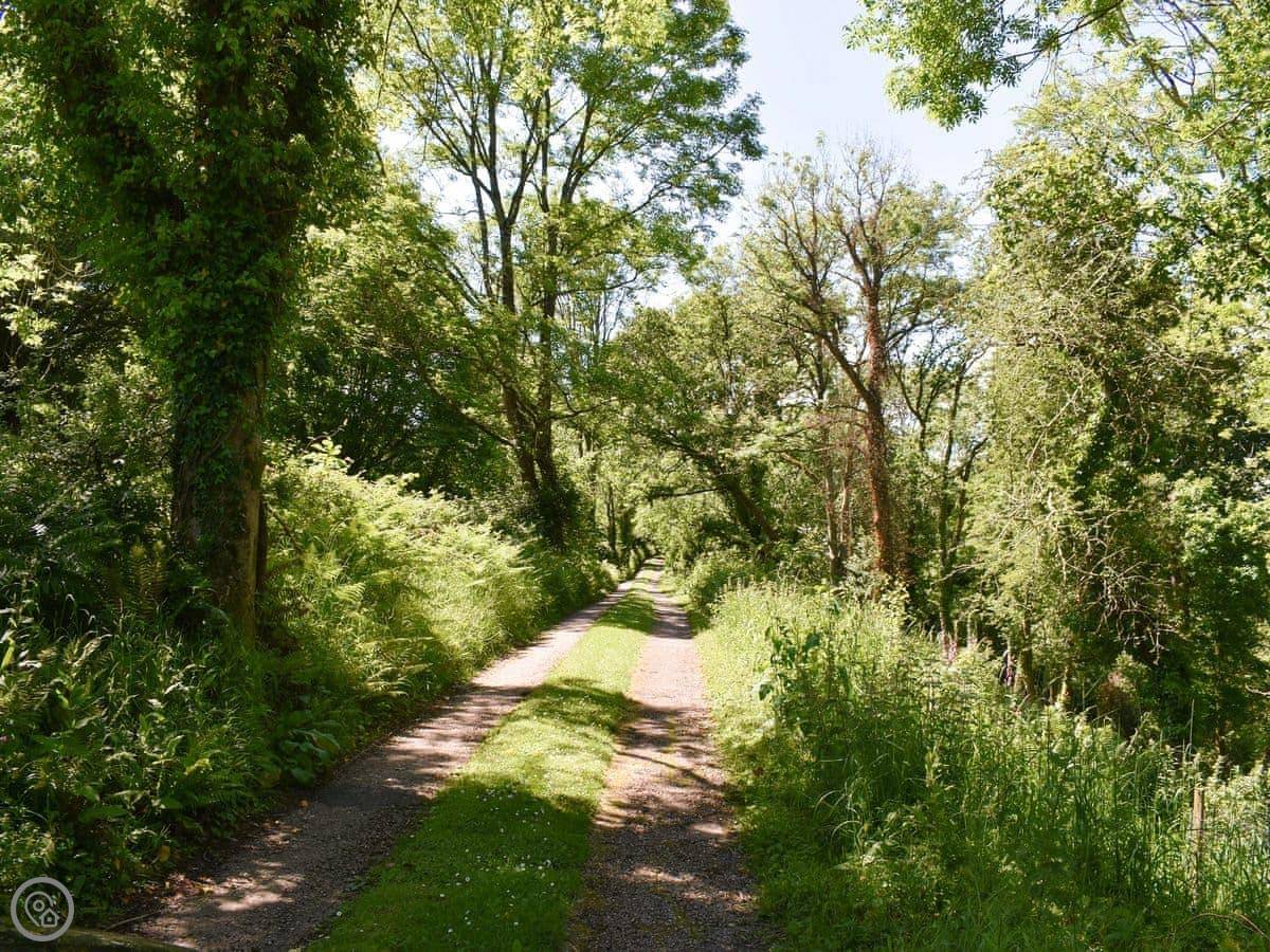 The farmstead sits in a valley with about 60 acres of its own woodland and meadows. You'll see deer if you're quiet. The drive in is about a mile long through the woods. You can walk straight out from the door. Buzzards and woodpeckers are common.
