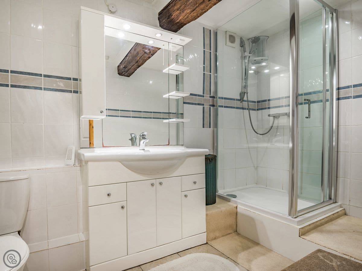 For facilities: there's a washing machine, dishwasher, TV, and WiFi included. Bedding and towels are provided. There's a cot and a stairgate if you need them. Bicycle storage is there. You can bring up to two dogs. Parking is on site.