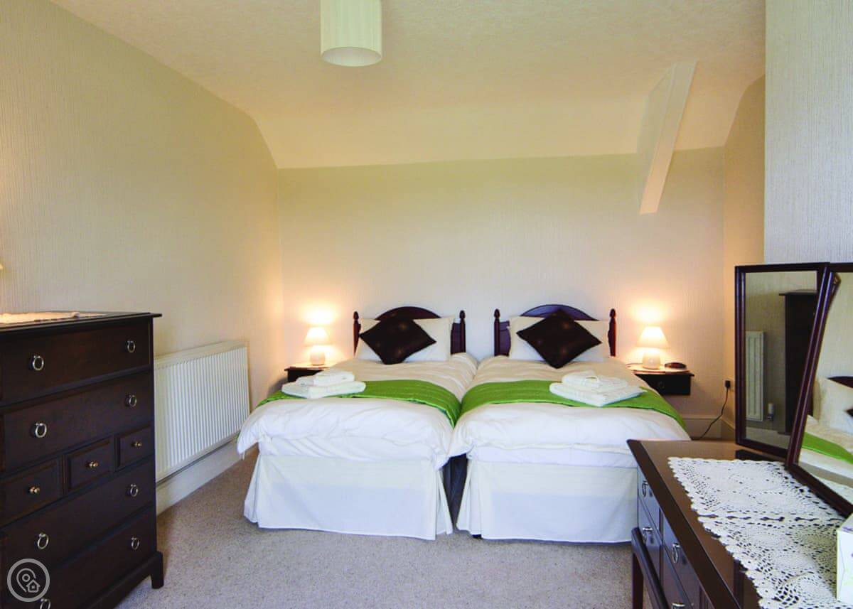 It's a former farmhouse, so it's solid. It sleeps six, with three bedrooms and two bathrooms which helps. It has a 5 Star rating. It's well kept and comfortable. It's not a show home. The stairs are normal.