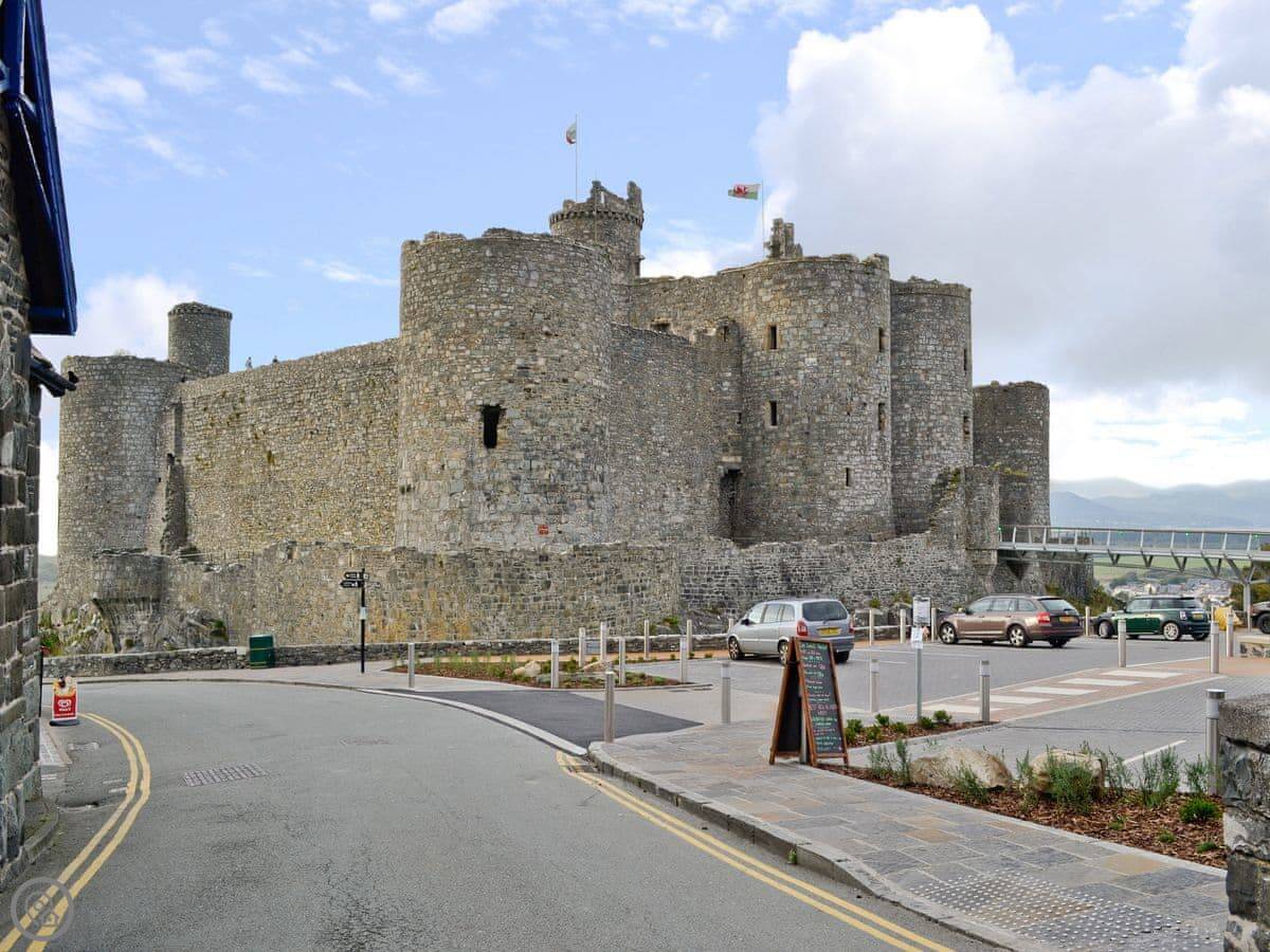 Harlech is about a mile down the hill. You can walk it, but it's steep coming back. It's a small place. There's a big castle in the middle, a few shops, cafes, and a good chip shop. The beach is sandy and long. The golf course is famous.