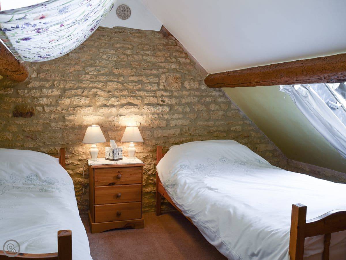 It sleeps four. Two bedrooms and one bathroom. The rating is 3 Star, which is accurate. It's clean and comfortable, but it's an old cottage. It's got beams, a woodburner, and there's an old bread oven in the wall. It's just there, doesn't work.