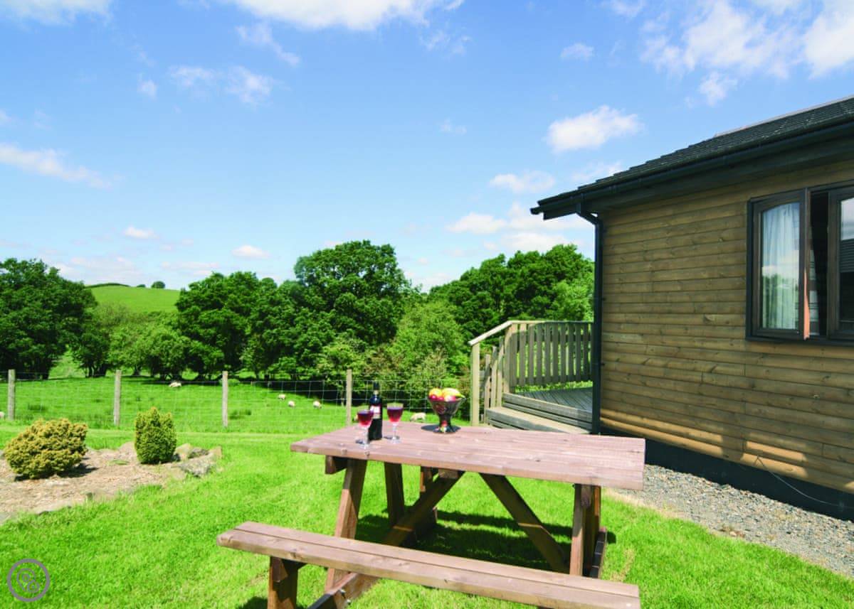Woodside Lodge is on our working farm near Penyfont, in Powys. It's a detached house, so you're on your own, which is nice. You get the garden and patio to yourselves as well.