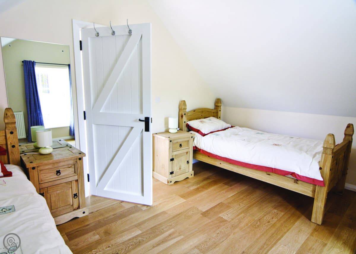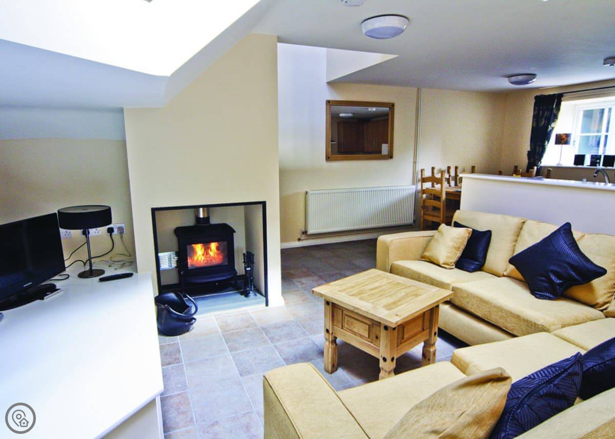 It sleeps six. Three bedrooms and two bathrooms. It’s got a 4 Star rating, so it's comfortable and well-finished. There's a wood burner for colder nights. The kitchen is open plan.