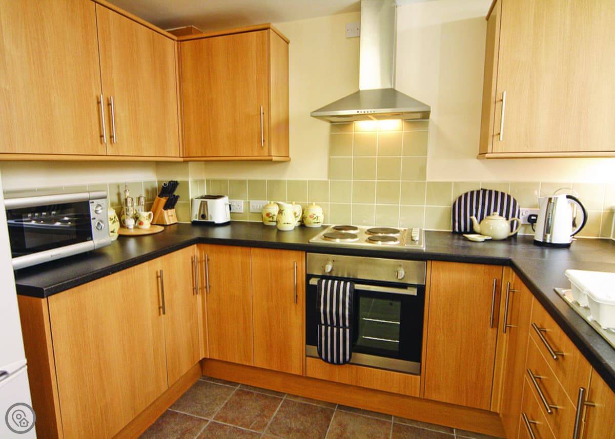 Inside there’s a washing machine, dishwasher, WiFi, and a cot and highchair if you need them. Bedding and towels are included. There’s a stairgate on the stairs. No pets, I’m afraid.