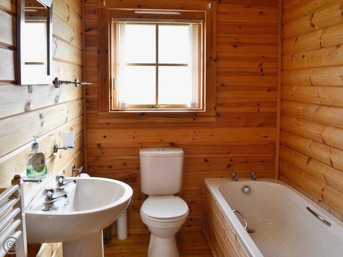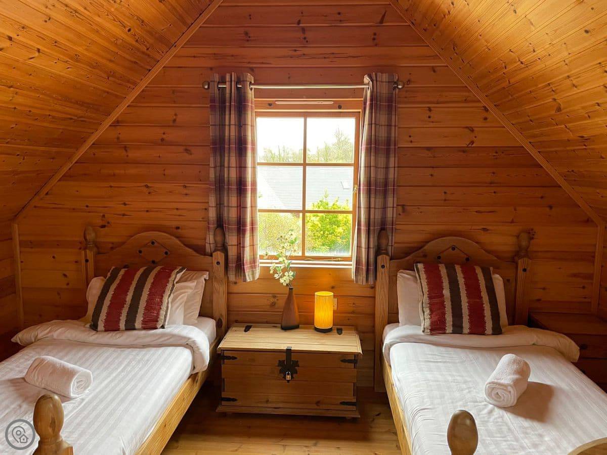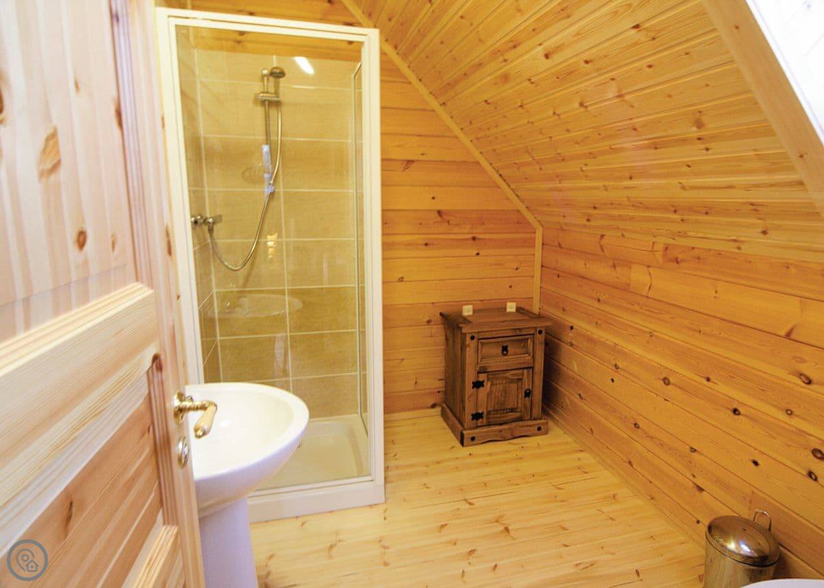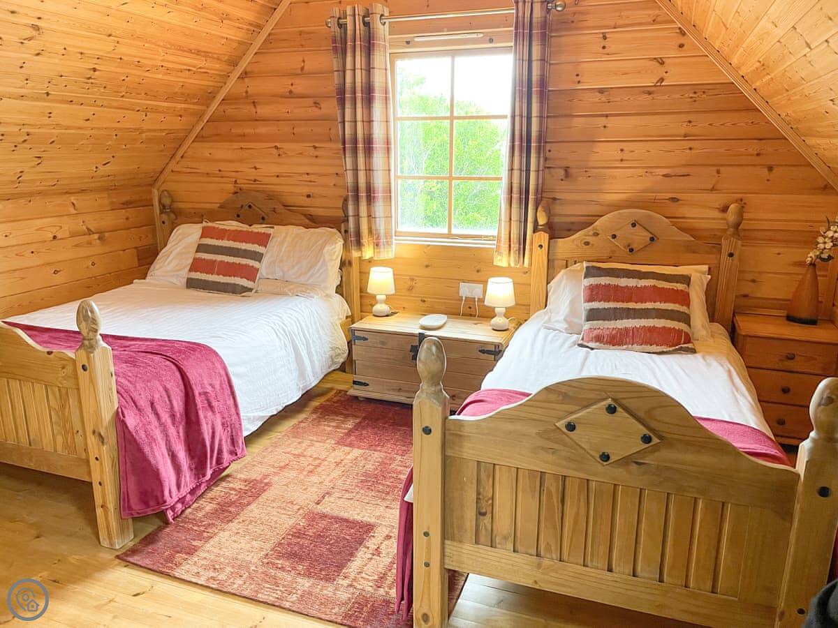 It sleeps seven. There are three bedrooms and each one has its own bathroom, which is really handy with a group. Everything's on the ground floor. It has a 4 Star rating, which means it's well-equipped and comfortable.