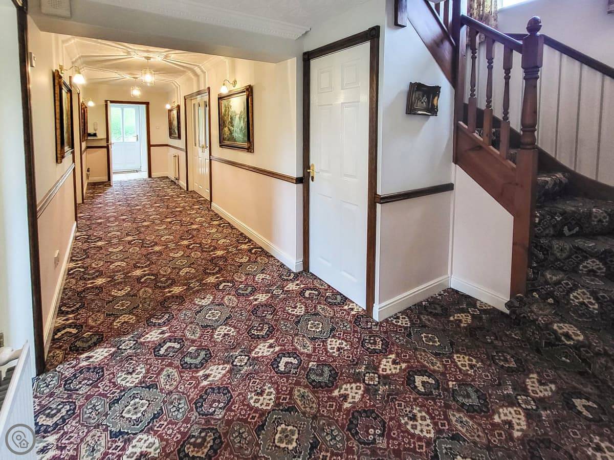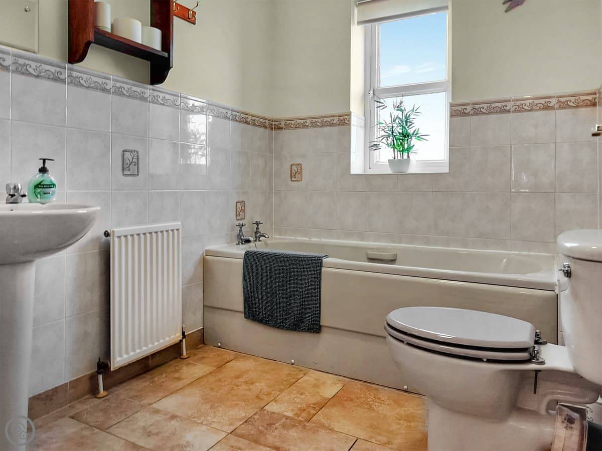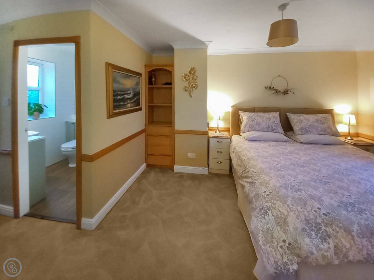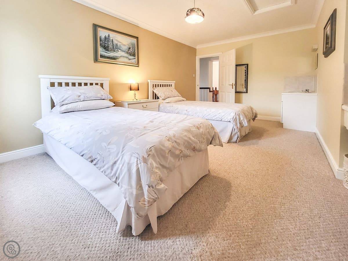 The house sleeps nine people. There are five bedrooms and three bathrooms. It's got a 3 Star rating, so it's comfortable and well-equipped, not luxurious. The rooms are all a good size.
