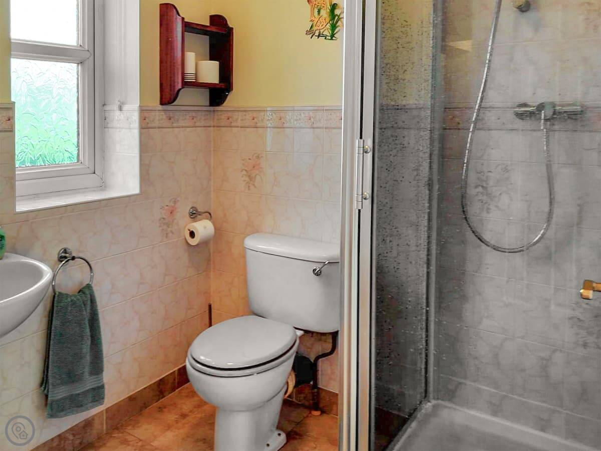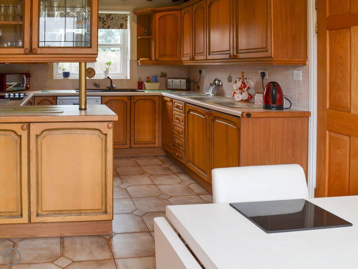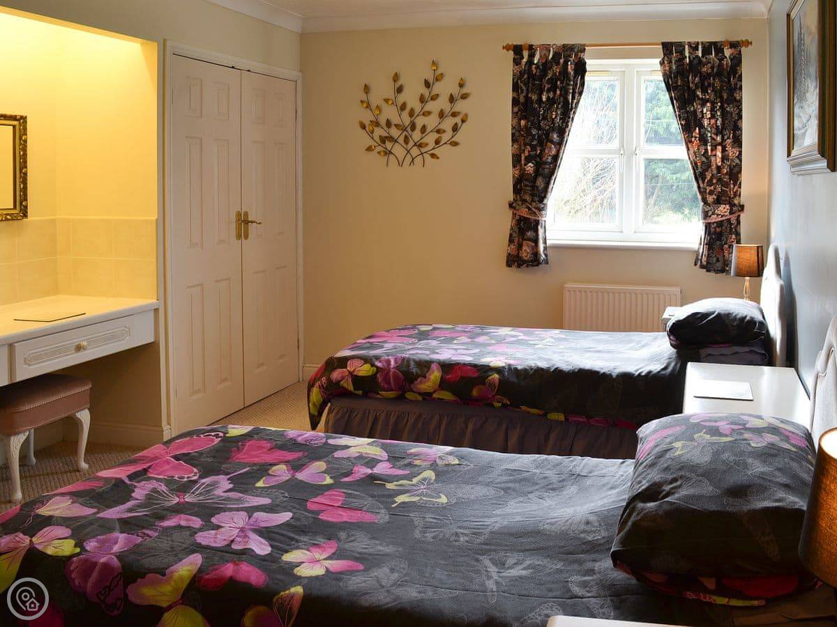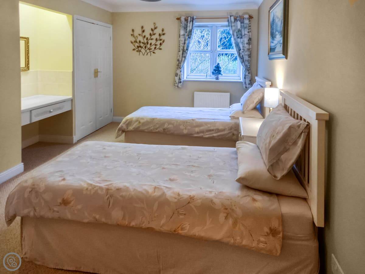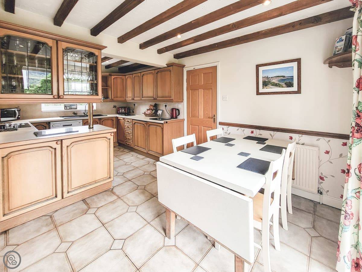 The house sleeps nine people. There are five bedrooms and three bathrooms. It's got a 3 Star rating, so it's comfortable and well-equipped, not luxurious. The rooms are all a good size.
