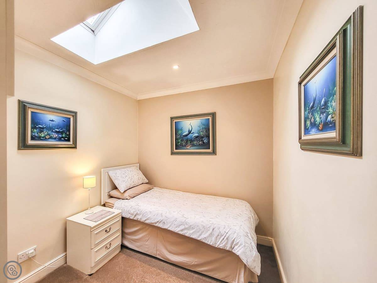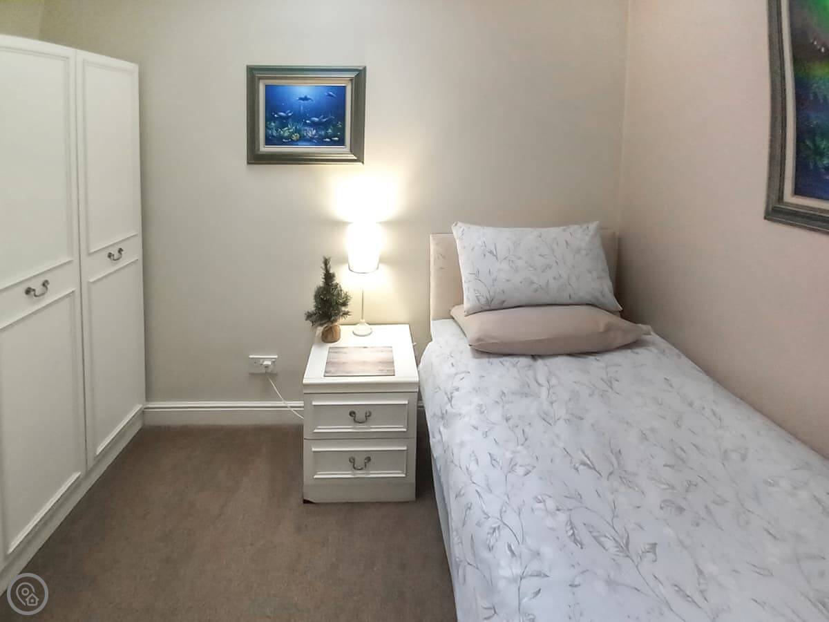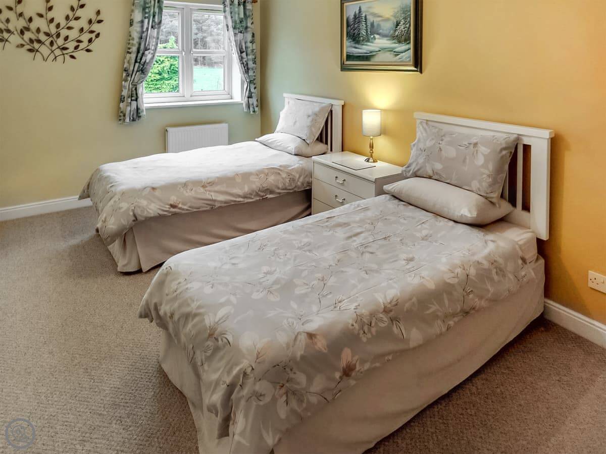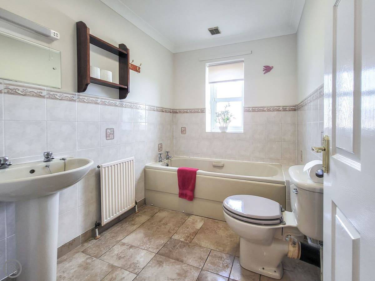 The house sleeps nine people. There are five bedrooms and three bathrooms. It's got a 3 Star rating, so it's comfortable and well-equipped, not luxurious. The rooms are all a good size.