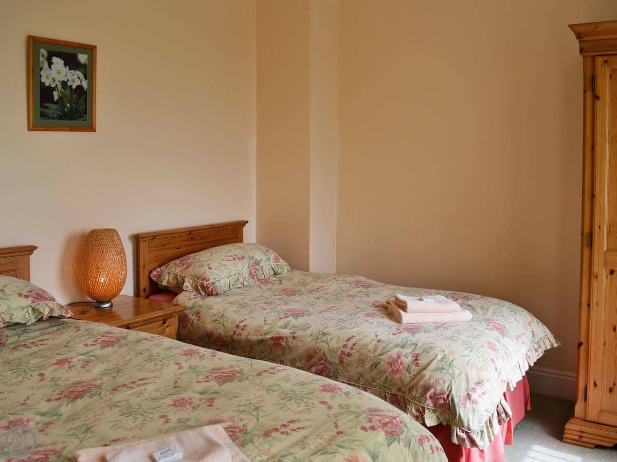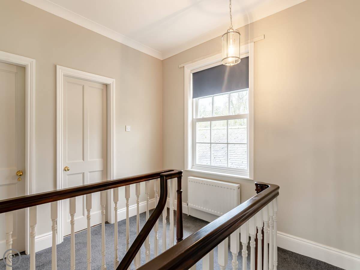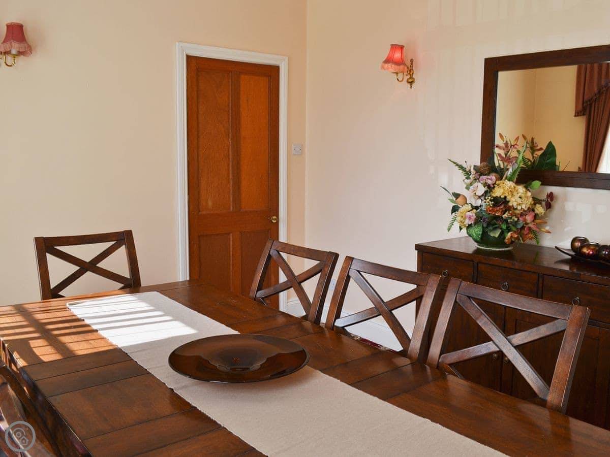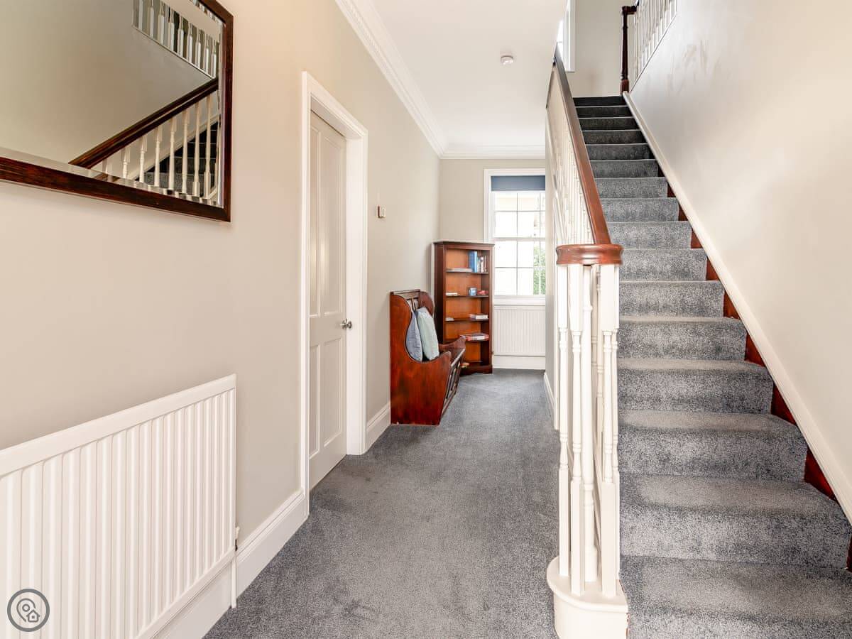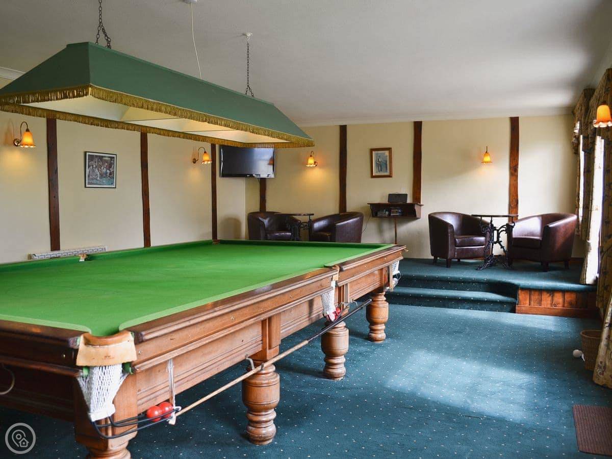 It sleeps ten. Five bedrooms, two bathrooms. It's a 4 Star property, so it's well-equipped and comfortable. The stairs are fine, just normal stairs. There’s a games room in the outbuilding with a pool table.