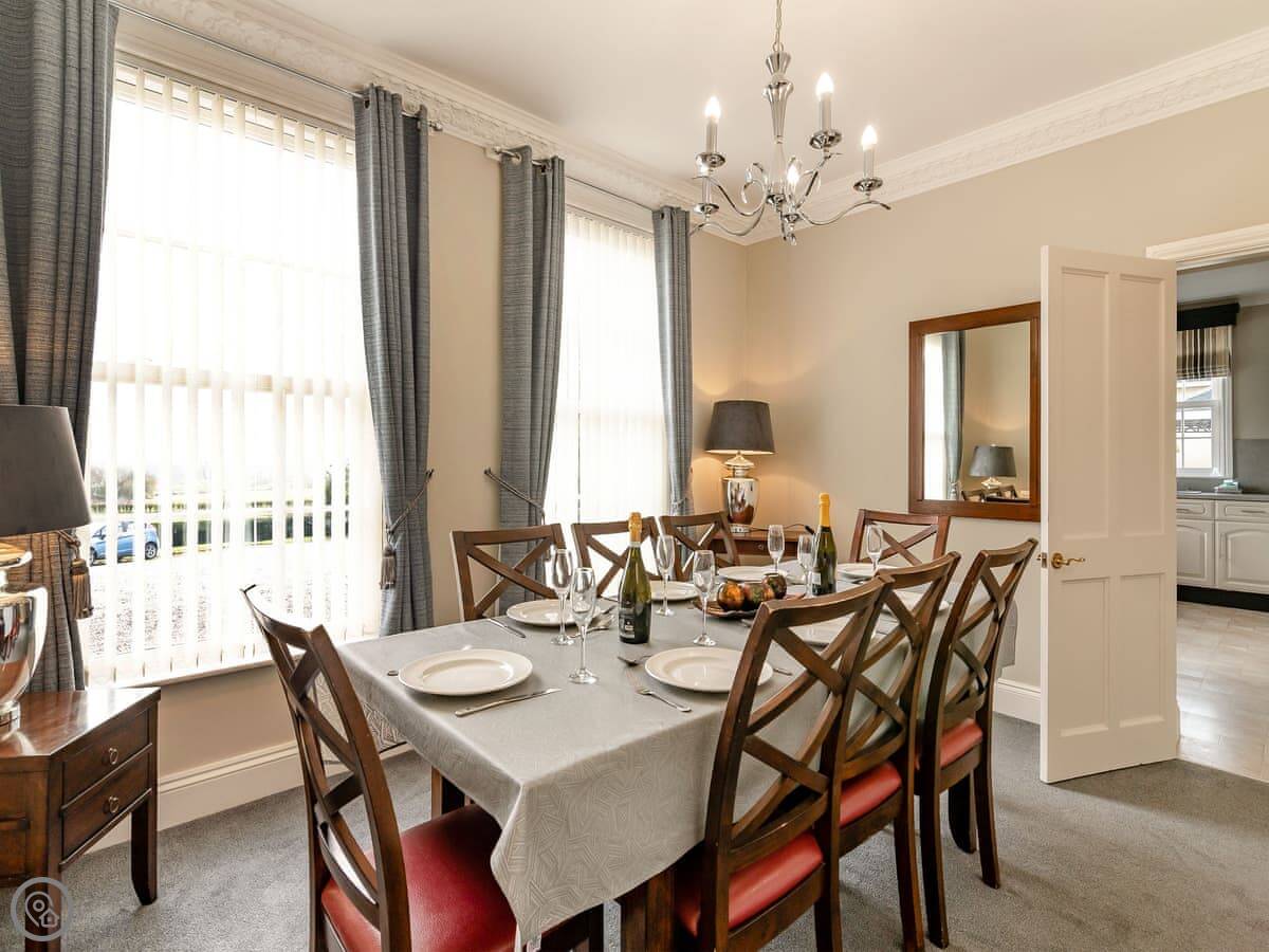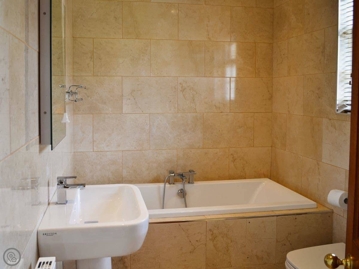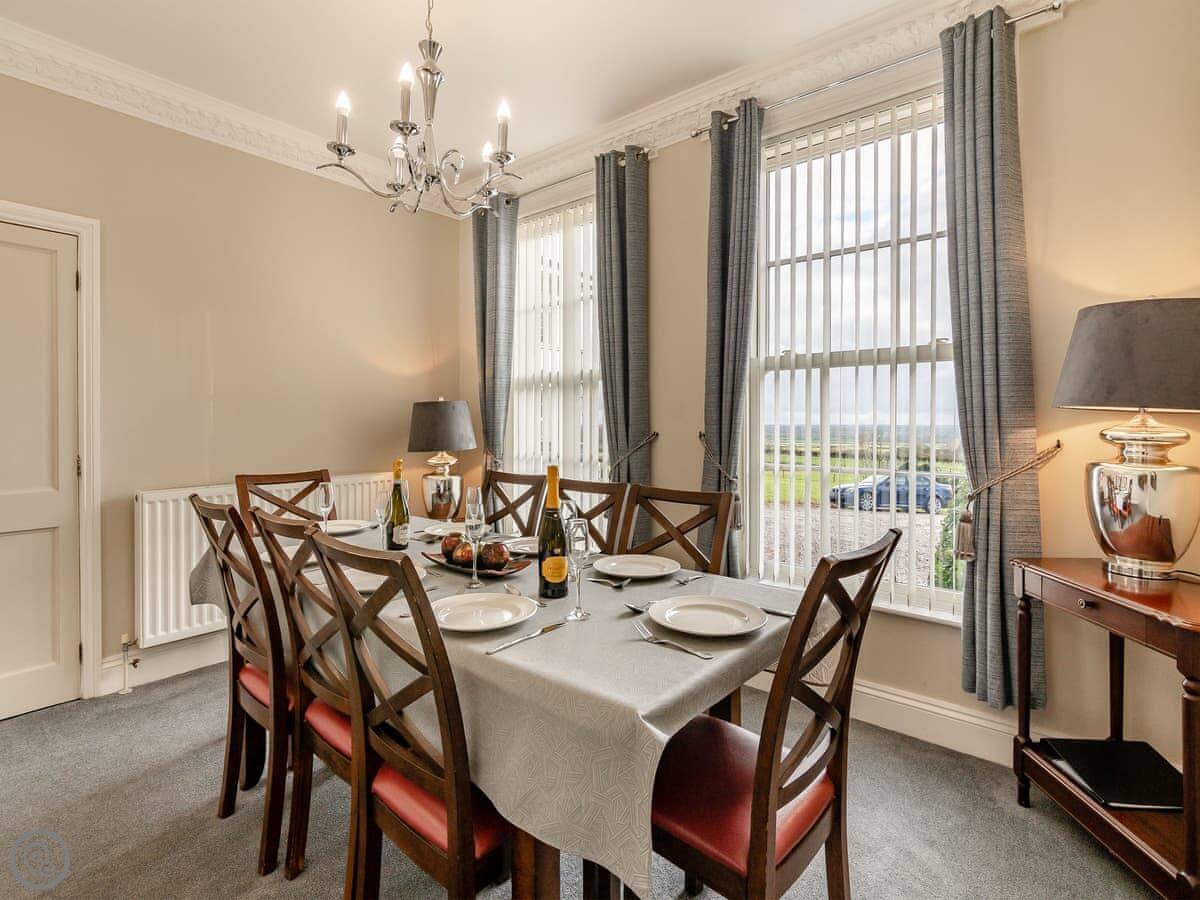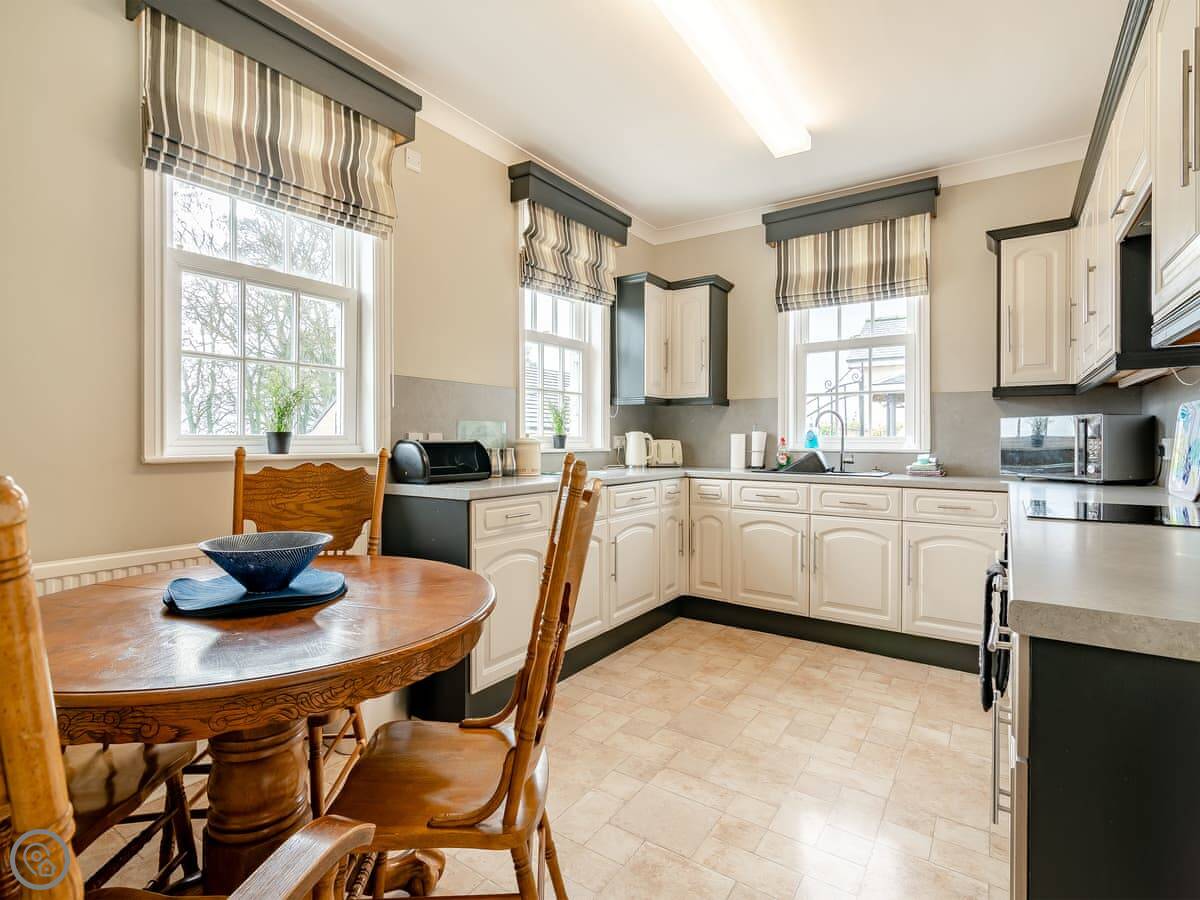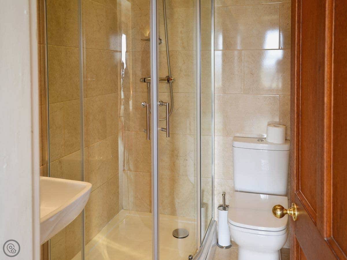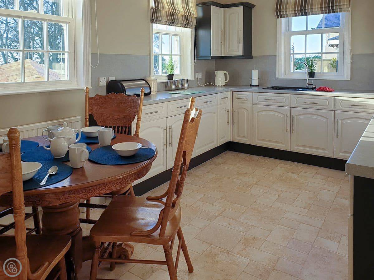 It sleeps ten. Five bedrooms, two bathrooms. It's a 4 Star property, so it's well-equipped and comfortable. The stairs are fine, just normal stairs. There’s a games room in the outbuilding with a pool table.