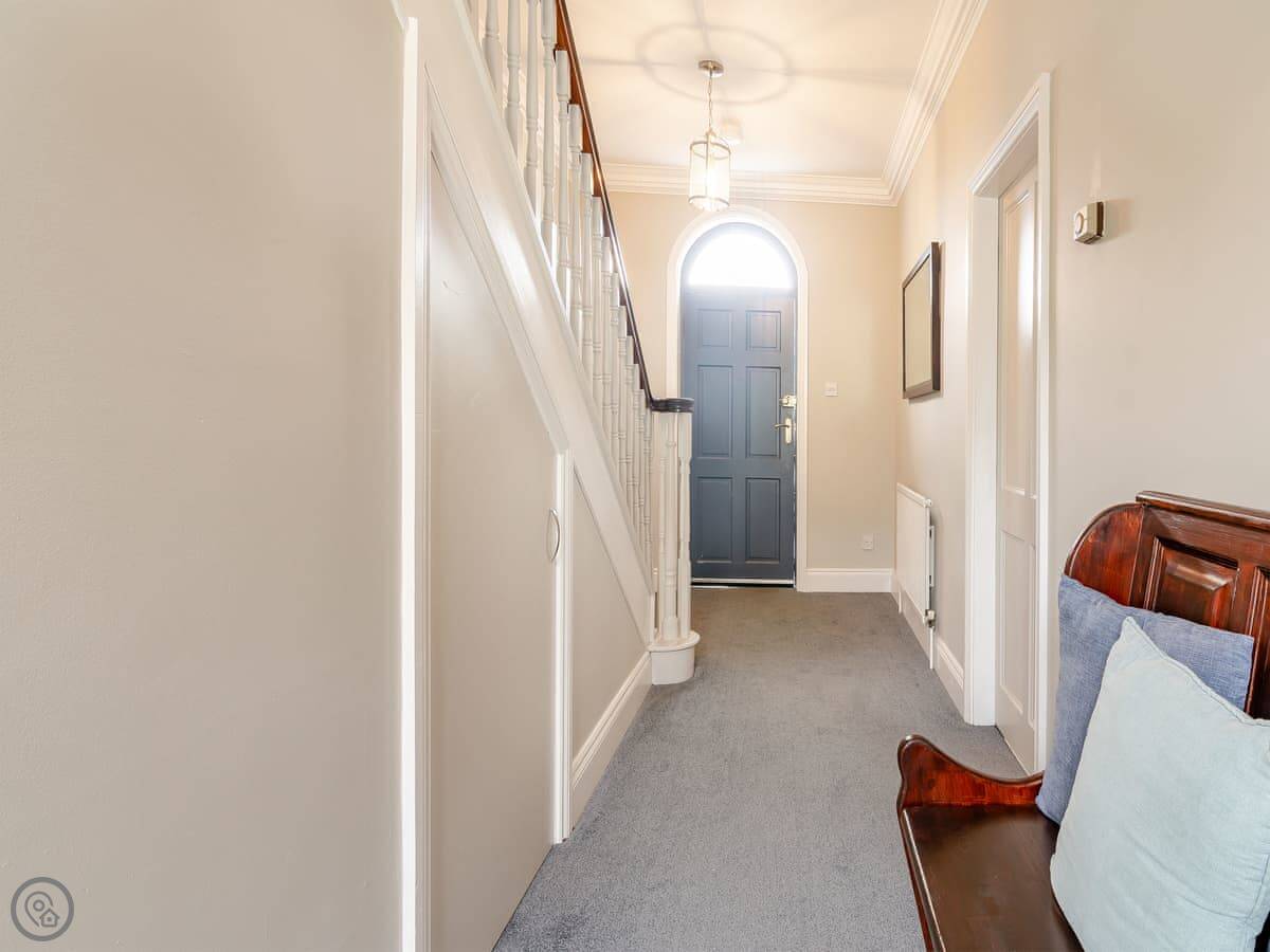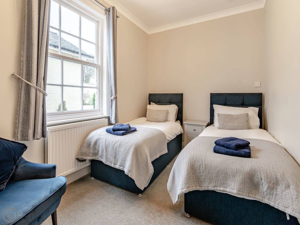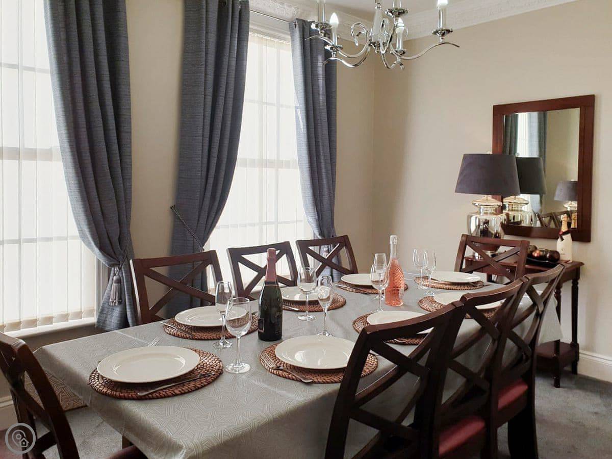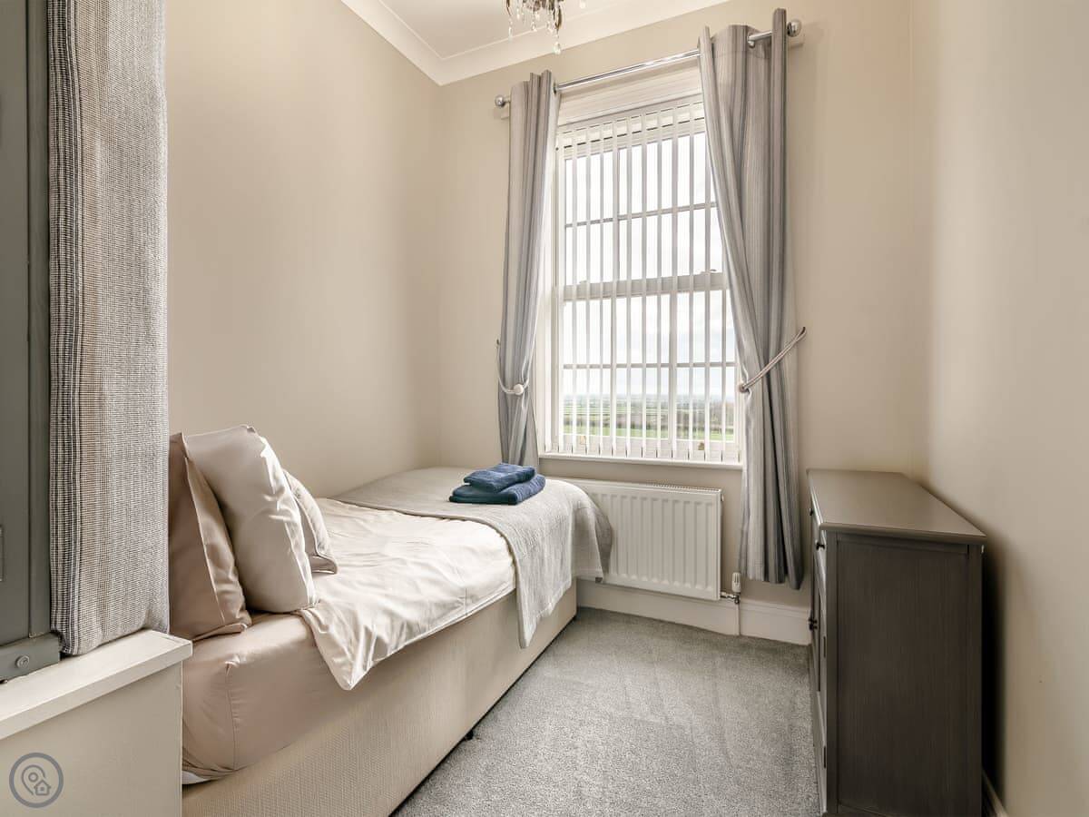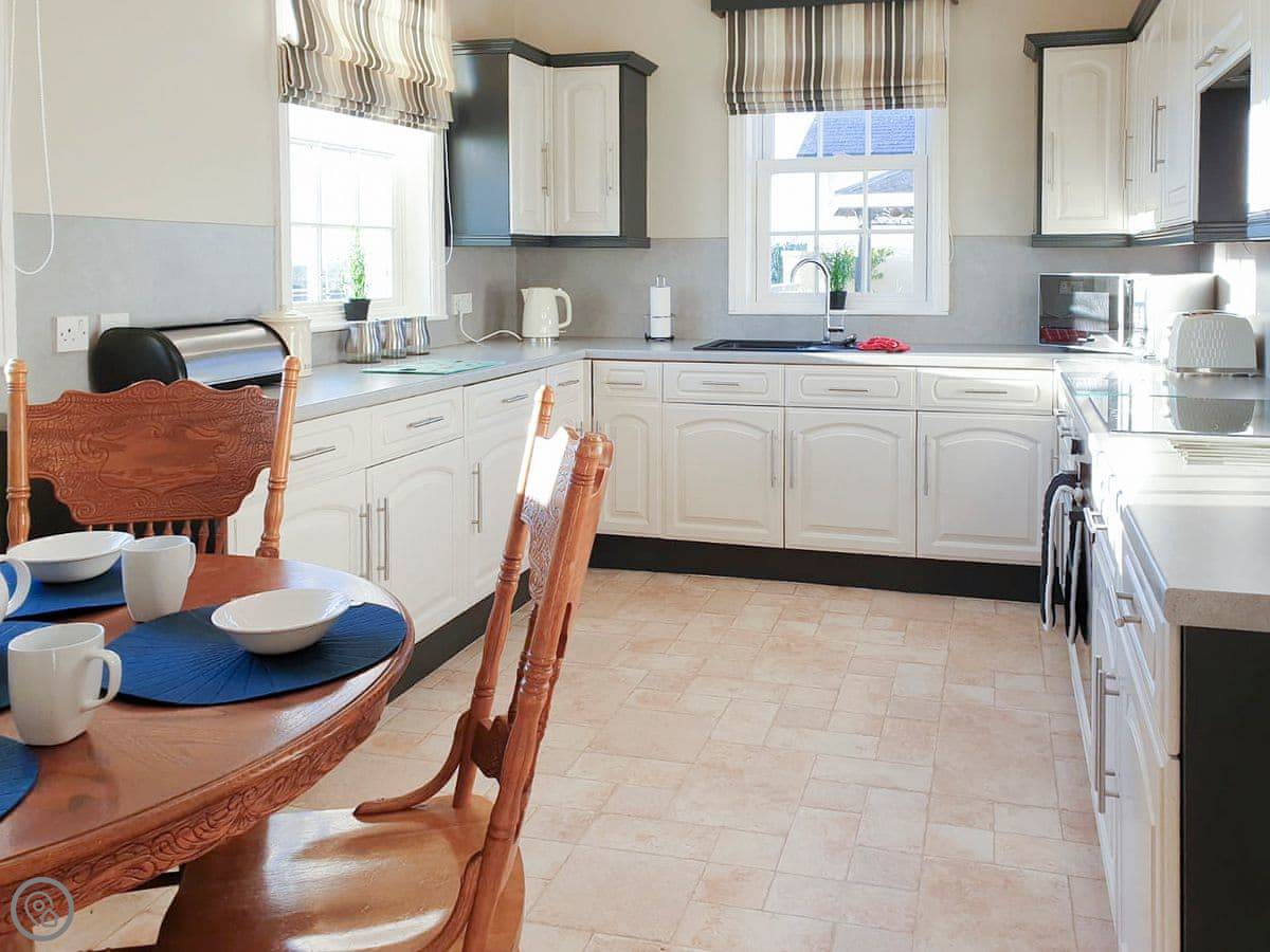 It sleeps ten. Five bedrooms, two bathrooms. It's a 4 Star property, so it's well-equipped and comfortable. The stairs are fine, just normal stairs. There’s a games room in the outbuilding with a pool table.